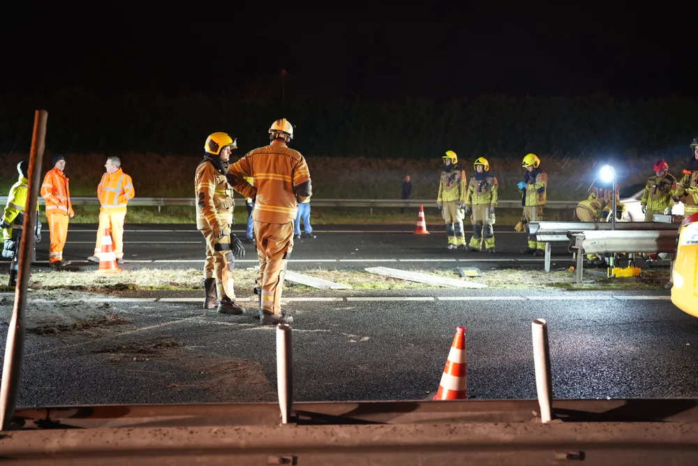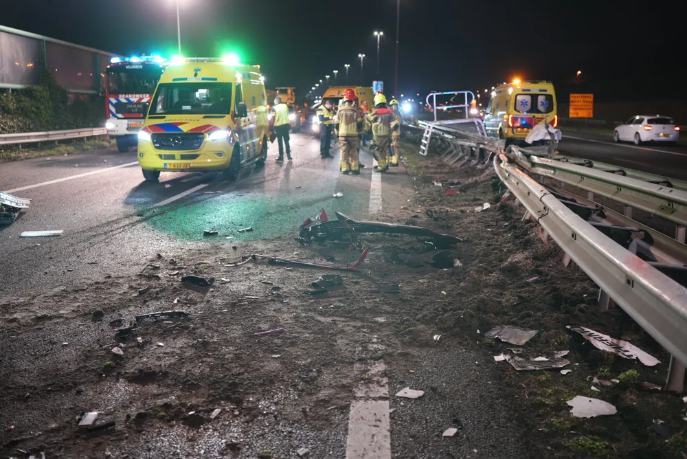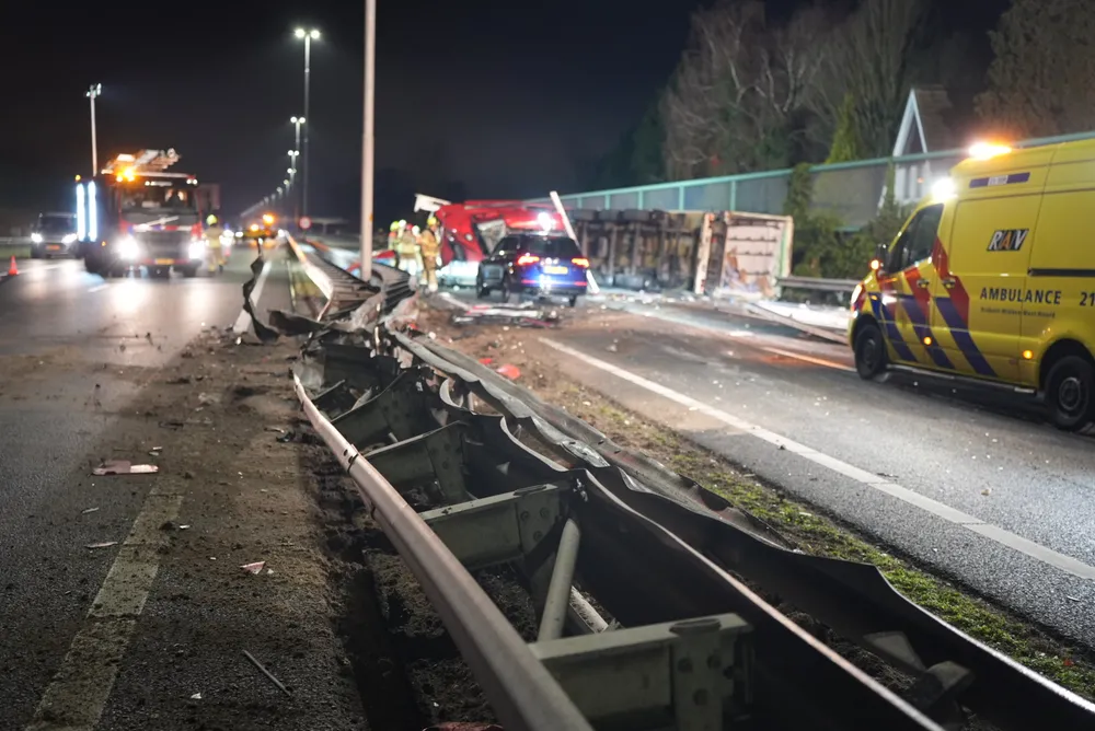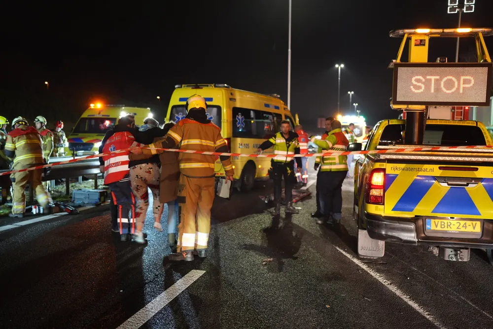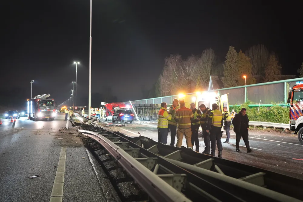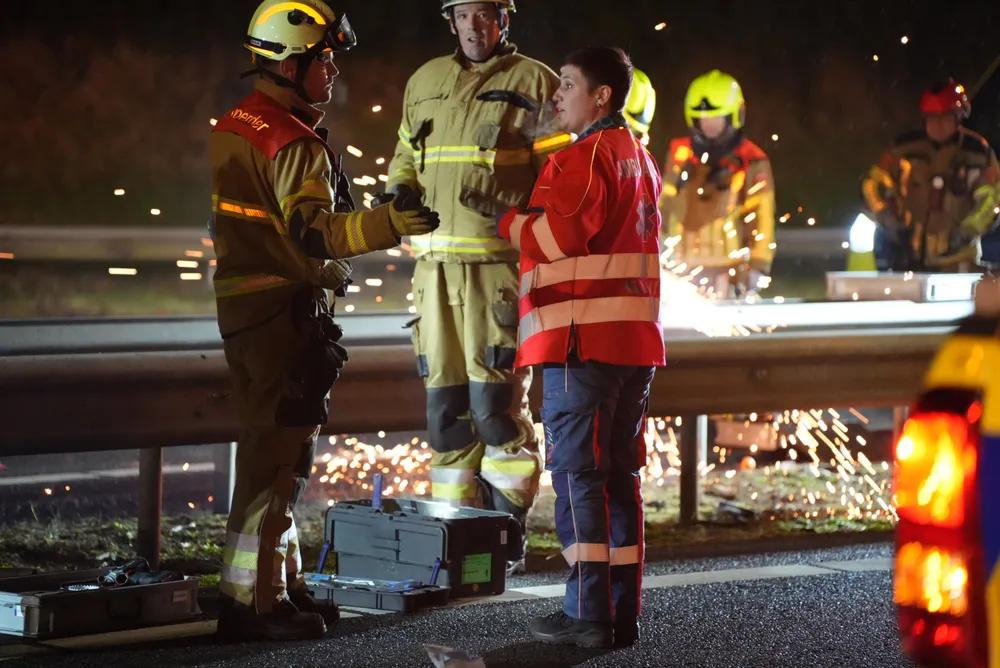 De vrachtwagenchauffeur en een vrouwelijke passagier zaten bekneld in de cabine en zijn door ambulancepersoneel en brandweerlieden bevrijd. De ambulance kon niet vertrekken vanwege het puin dat het gehele wegdek bedekt. De brandweer heeft de vangrail moeten open slijpen om de ambulance doorgang te bieden. Op dit moment is de toestand van de bestuurder van de zwarte auto nog onbekend.
