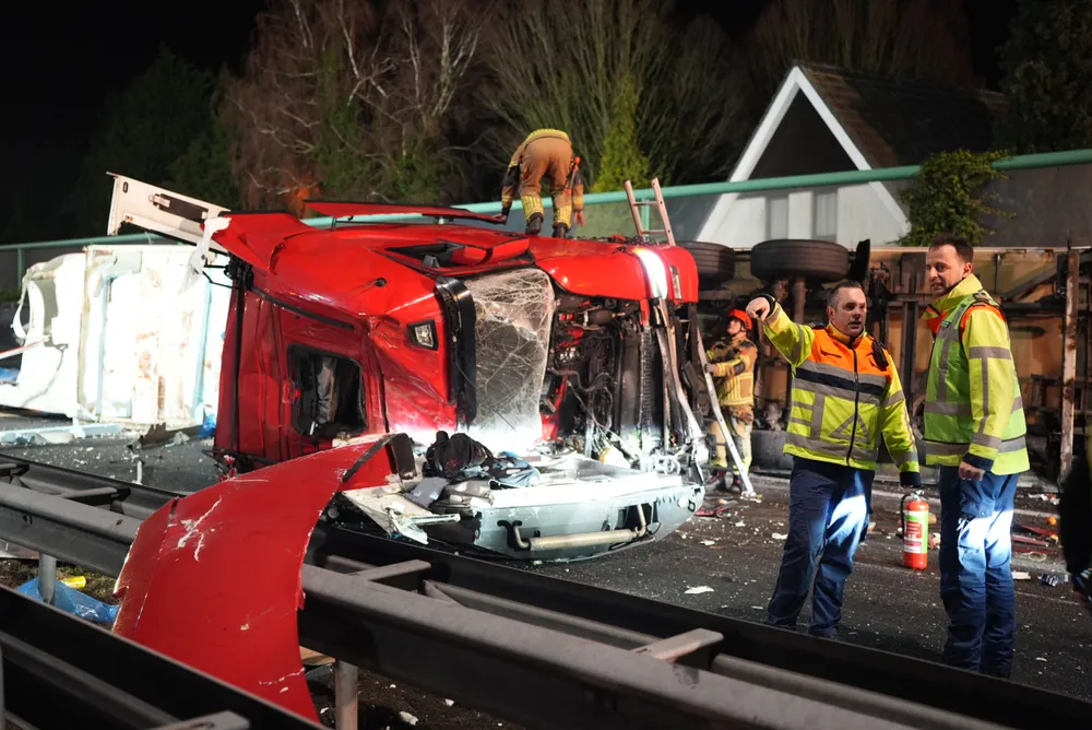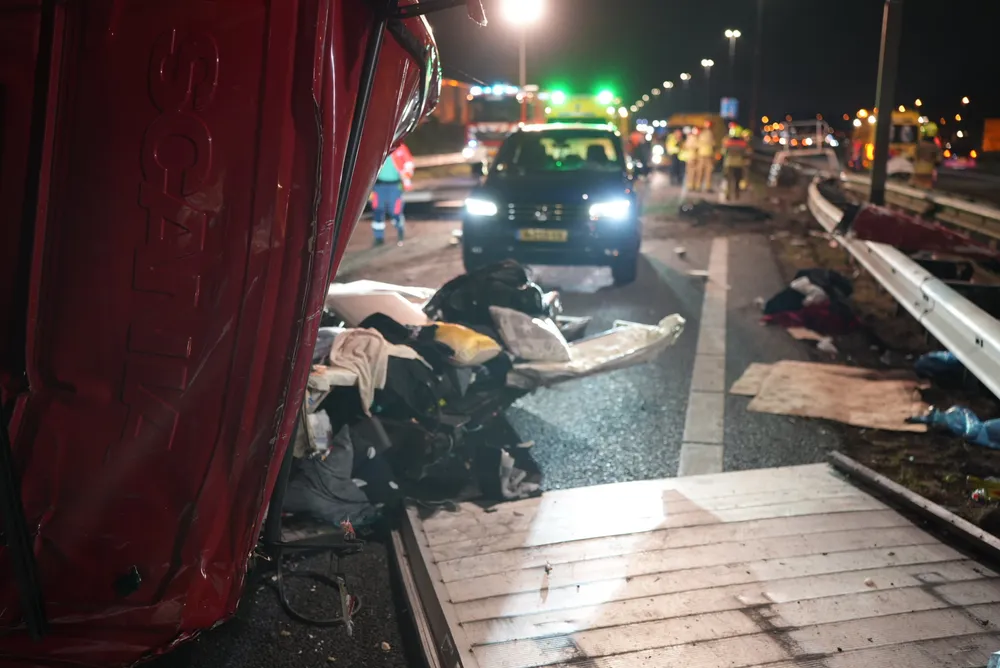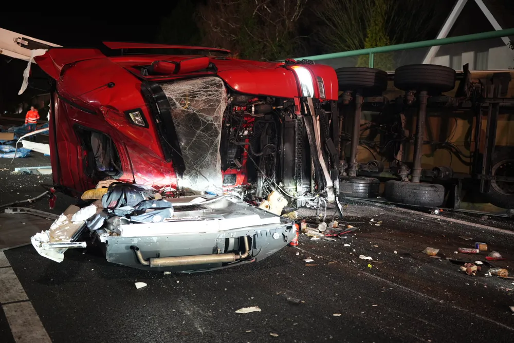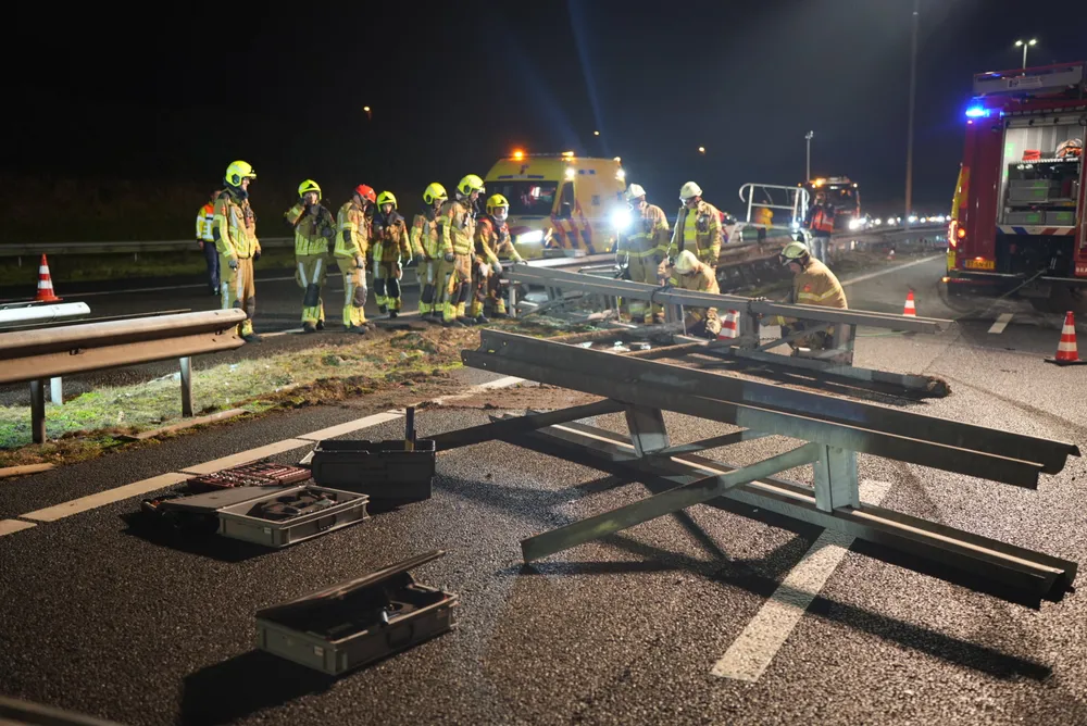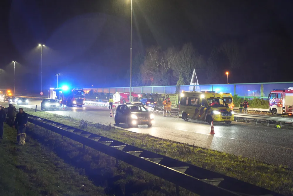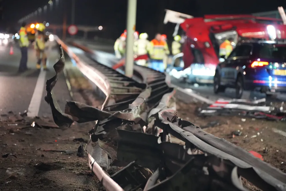 De vrachtwagenchauffeur en een vrouwelijke passagier zaten bekneld in de cabine en zijn door ambulancepersoneel en brandweerlieden bevrijd. De ambulance kon niet vertrekken vanwege het puin dat het gehele wegdek bedekt. De brandweer heeft de vangrail moeten open slijpen om de ambulance doorgang te bieden. Op dit moment is de toestand van de bestuurder van de zwarte auto nog onbekend.