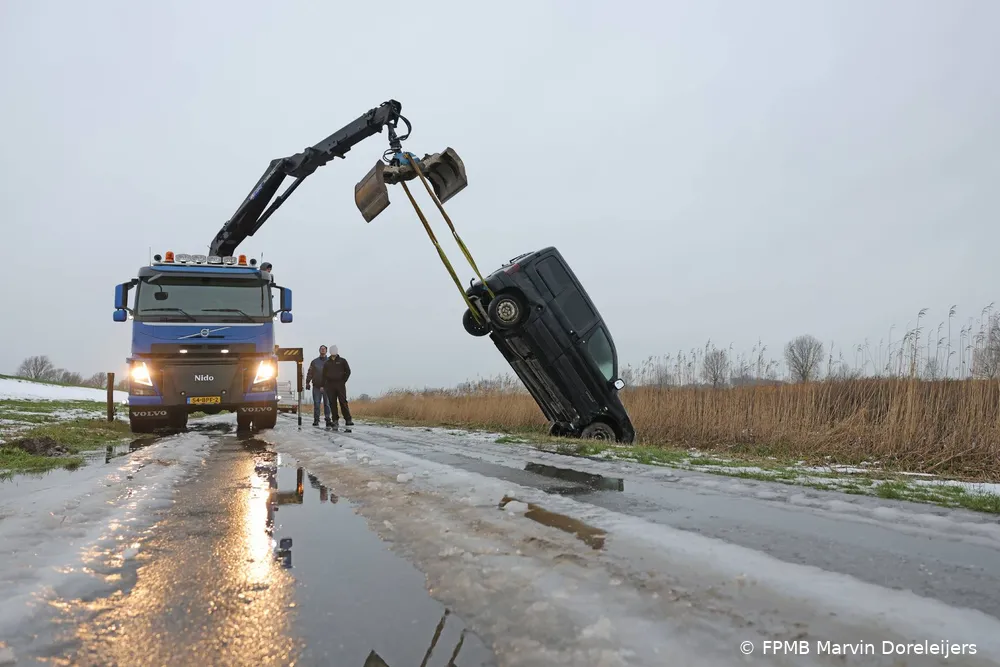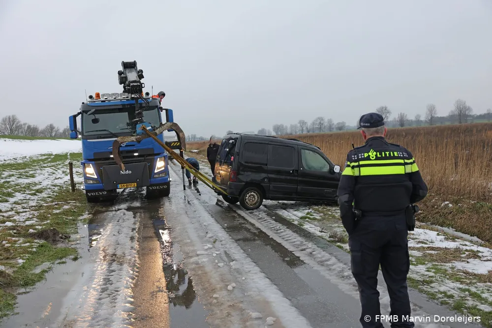 Tijdens het telefoongesprek met de meldkamer arriveerde een bergingsbedrijf om het voertuig uit de sloot te halen. Op datzelfde moment verscheen ook de vermoedelijke bestuurder ter plaatse. Deze kwam met een andere auto en aanhanger om het voertuig op te halen.