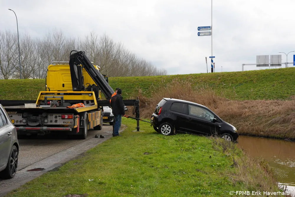 WAALWIJK - In de vroege zondagmiddag is een personenauto in een brede sloot terechtgekomen aan de Keurweg, ter hoogte van de Havenweg. Het ongeval gebeurde rond 13.45 uur toen een automobiliste vanaf de Havenweg de bocht richting de Keurweg wilde nemen.