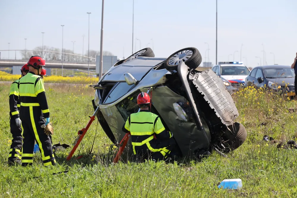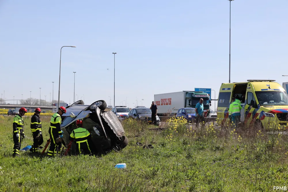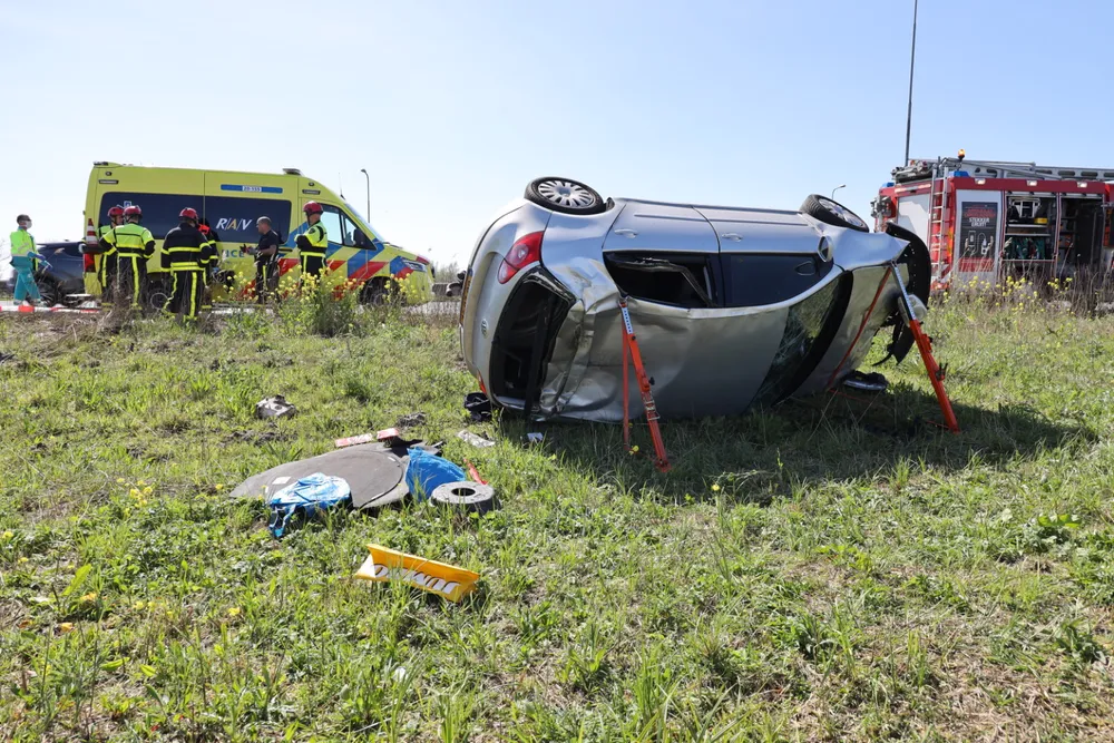 Een takelbedrijf heeft het zwaarbeschadigde voertuig weer recht gezet en geborgen. Het passerende verkeer ondervond niet veel last van het ongeval.