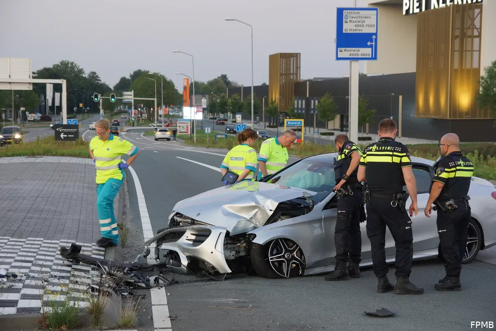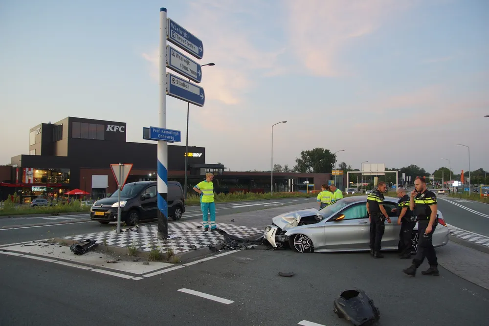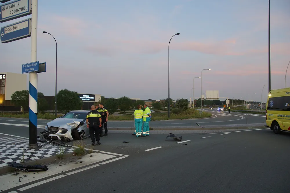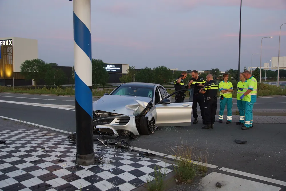 Een automobilist is vrijdagavond met zijn auto tegen een paal aangereden op de Professor Kamerlingh Onnesweg in Waalwijk.
