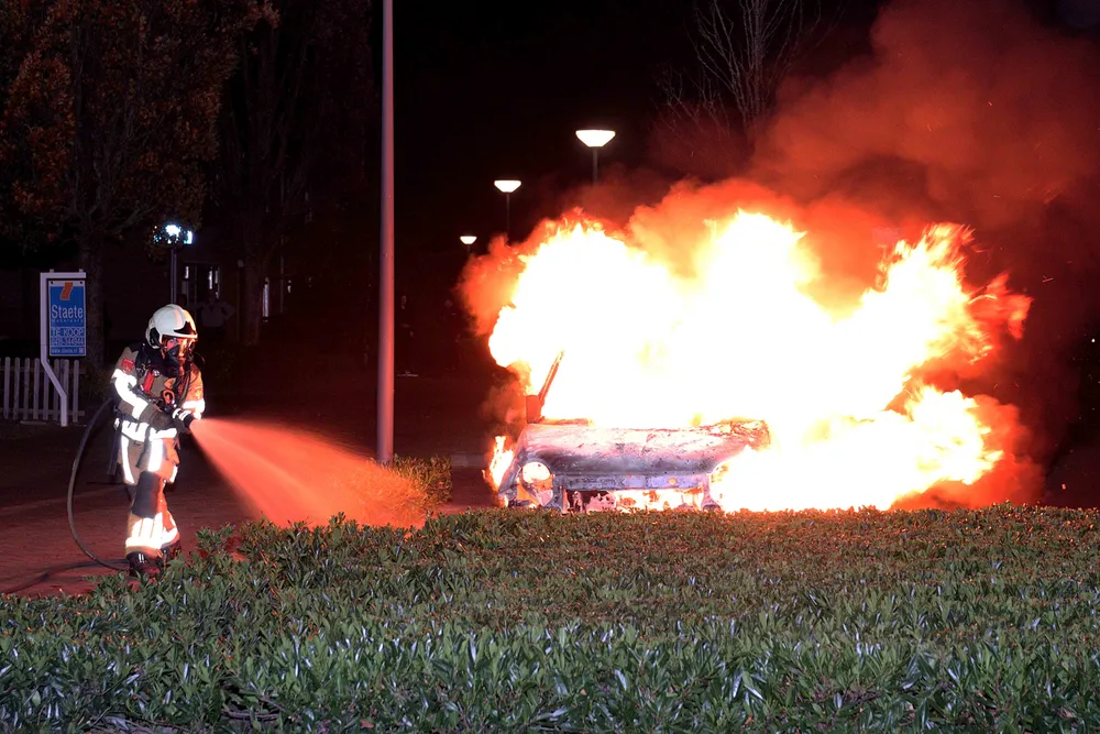 Buurtbewoners hoorde een knal en gingen poolshoogte nemen. Op de parkeerplaats zagen ze een auto in brand staan. De brandweer heeft de brand snel kunnen blussen. Hoe de autobrand precies is ontstaan, is nog onduidelijk. De politie doet onderzoek naar de oorzaak.