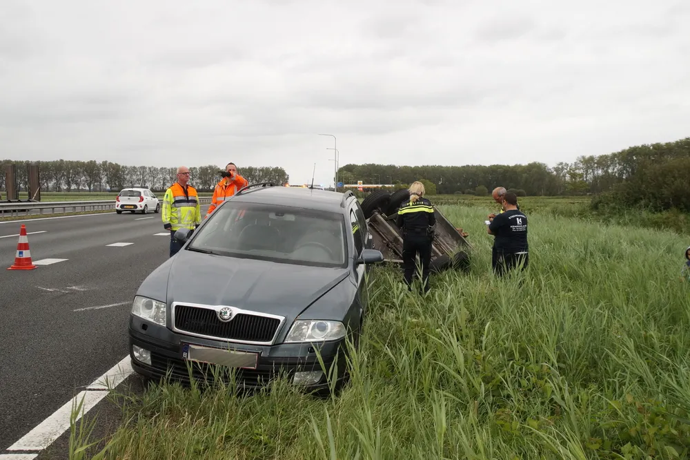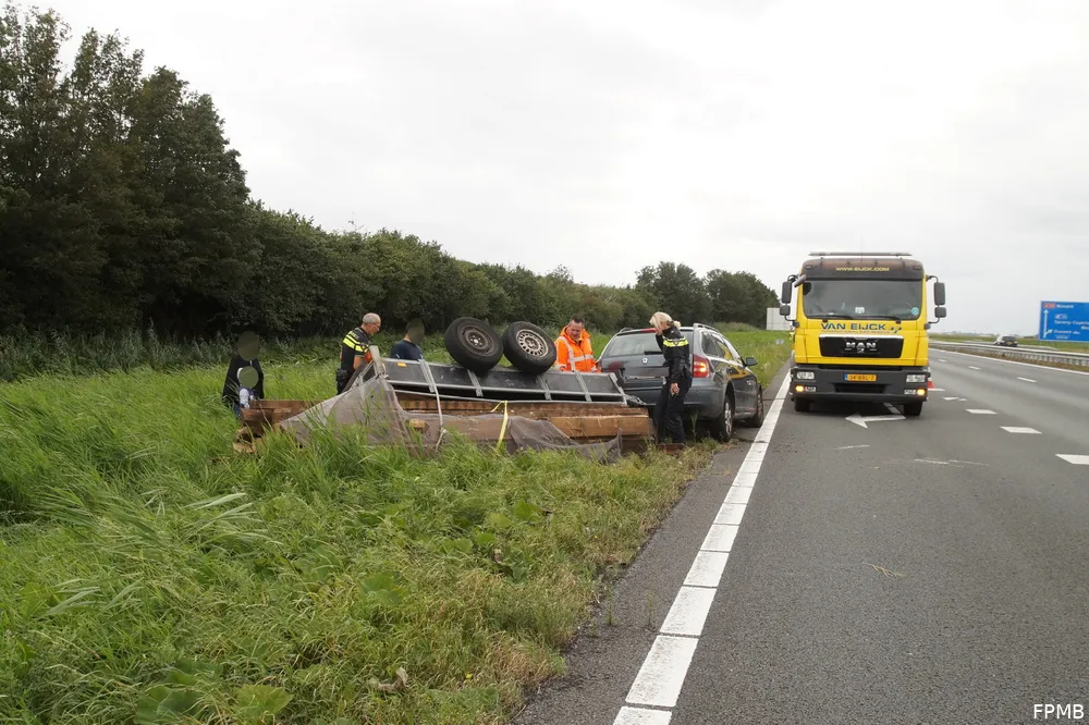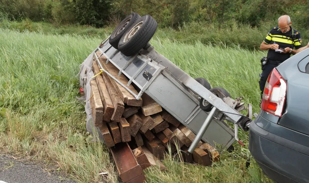 Hoe het ongeluk heeft kunnen gebeuren, is niet bekend. De twee kinderen in de auto hebben niks, maar waren wel flink geschrokken. Het verkeer ondervindt hier verder geen hinder van, omdat de aanhanger langs de kant van de weg ligt.