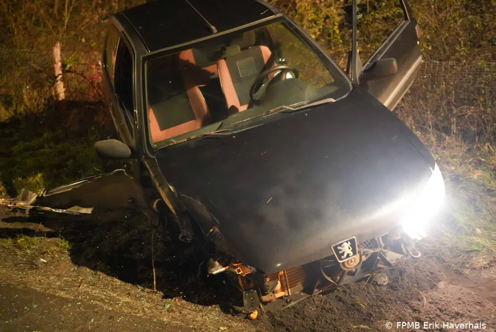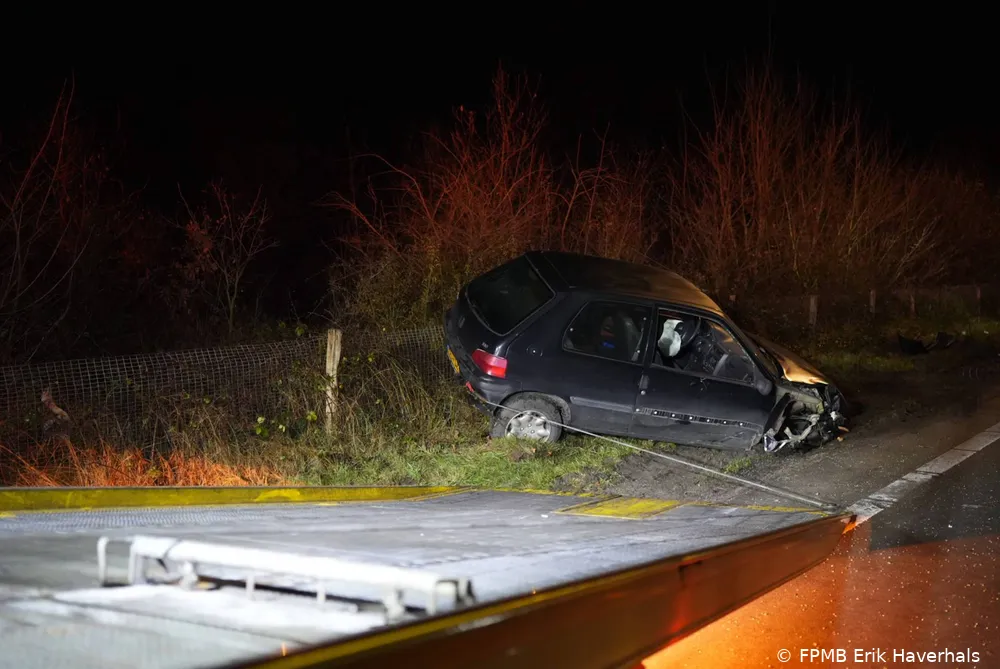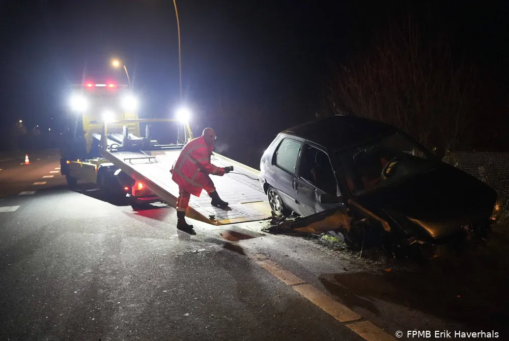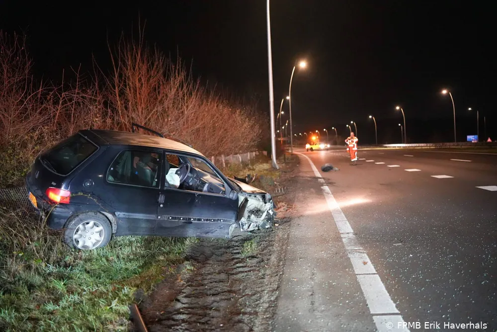 De auto raakte van de weg en botste tegen een lantaarnpaal langs de rijbaan. Door de klap sloeg het voertuig om en kwam uiteindelijk tot stilstand in de afrastering naast de weg. Ondanks de forse schade bleef de bestuurster wonderwel ongedeerd.