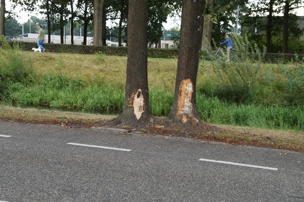 Ze ramde vervolgens twee bomen en kwam aan de andere kant van de weg tegen de stoeprand tot stilstand. De vrouw raakte hierbij licht gewond. De auto was zwaar beschadigd.