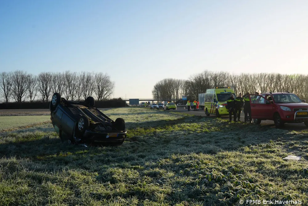 SPRANG-CAPELLE – Dinsdagmorgen 30 december rond 09:50 uur heeft zich een eenzijdig verkeersongeval voorgedaan op de A59 ter hoogte van Sprang-Capelle. Een automobiliste raakte met haar voertuig van de weg en kwam na meerdere botsingen en op de kop tot stilstand in de berm.