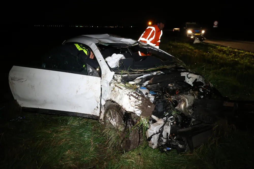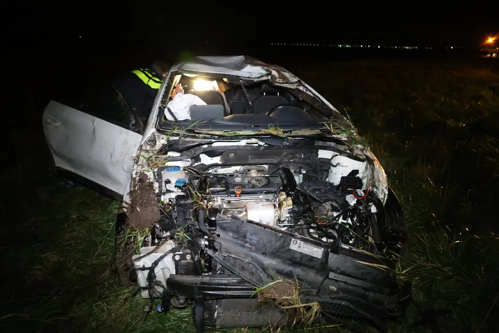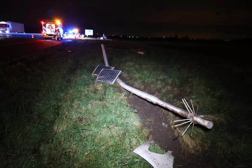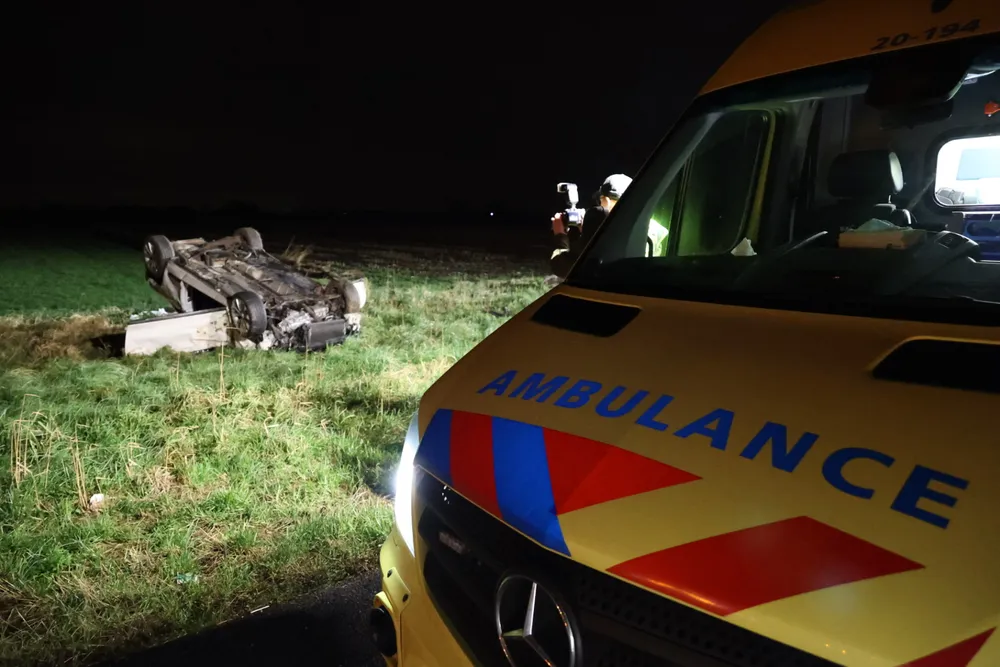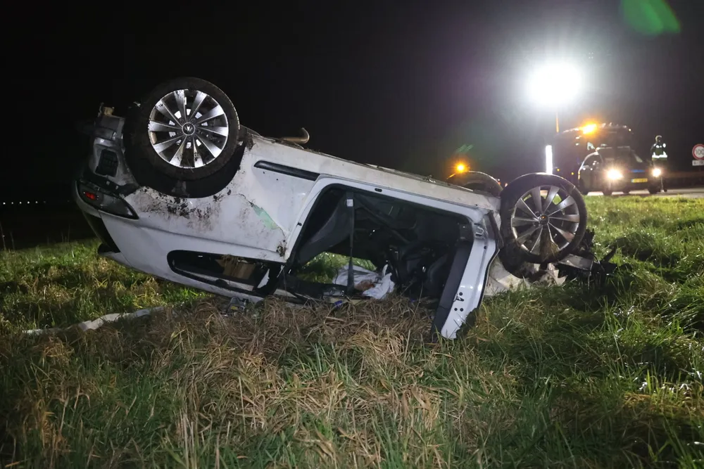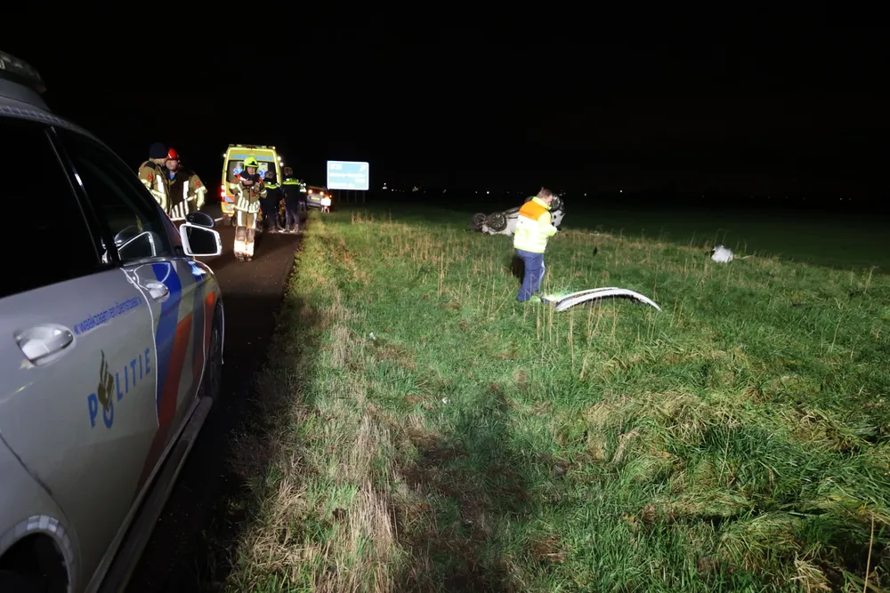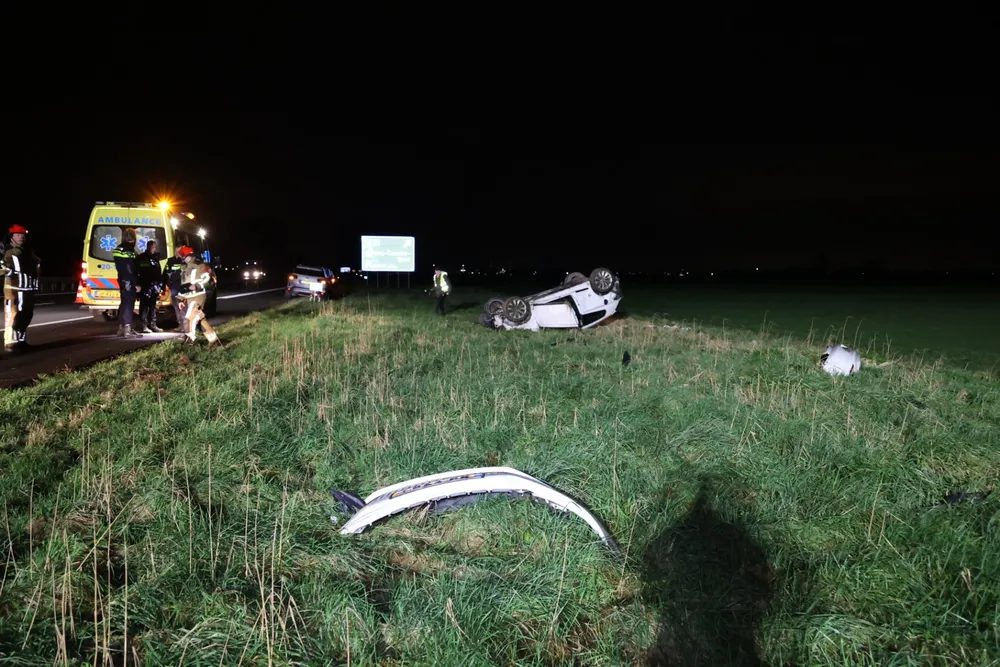 De vrouw reed een meetstation uit de grond en kwam vervolgens met haar auto honderd meter verder ondersteboven tot stilstand in de berm. Verspreid over de weg lagen onderdelen van de auto. Door de harde klappen raakte het voertuig flink beschadigd.