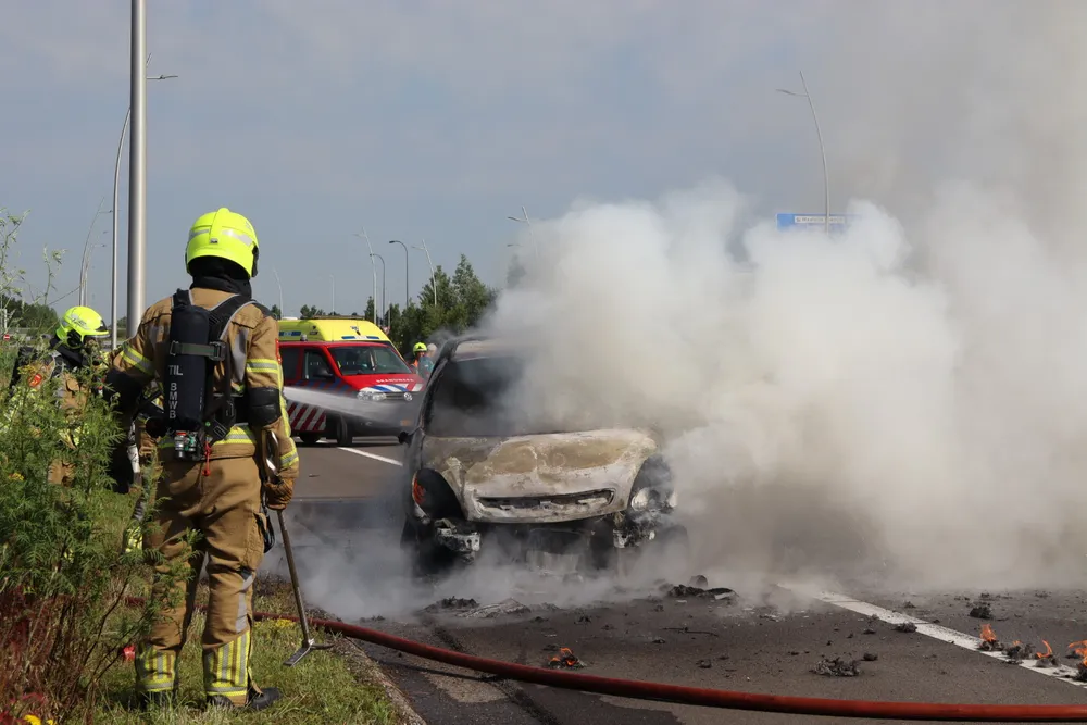 WAALWIJK - Bij een botsing tussen meerdere auto's op de Midden-Brabantweg bij Waalwijk is maandagochtend 24 juni een auto in brand gevlogen. Het ongeval vond plaats in de richting van Kaatsheuvel.