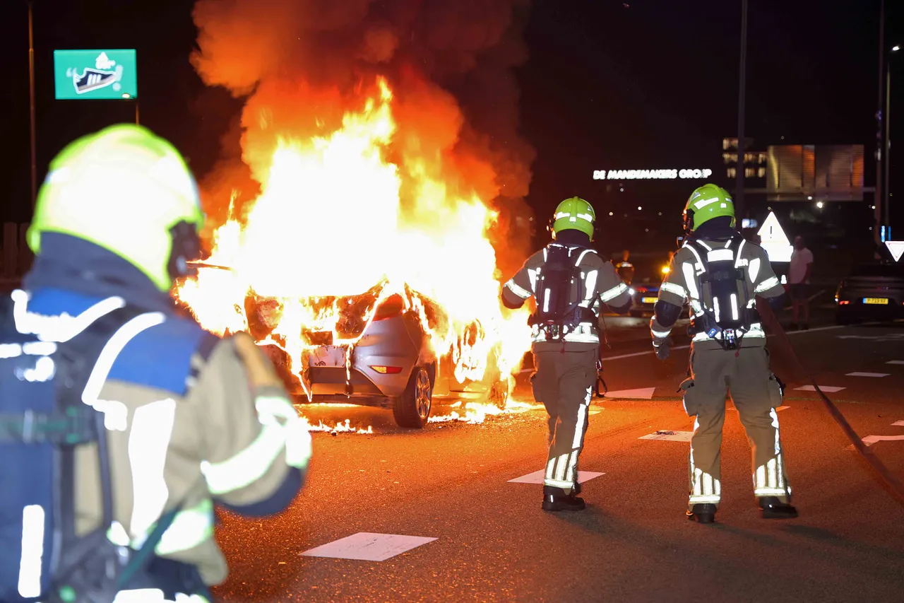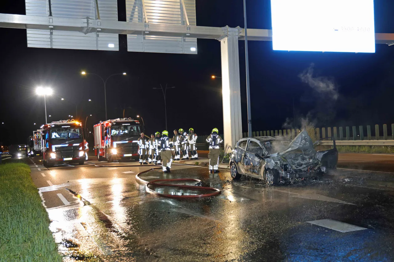 Volgens de politie begon het voertuig onder de motorkap te branden. De bestuurder kon veilig uit de auto komen. Tijdens de bluswerkzaamheden sloot de politie de weg aan beide zijden af. Hoewel de brandweer het vuur snel onder controle had, bleef er weinig over van de auto.