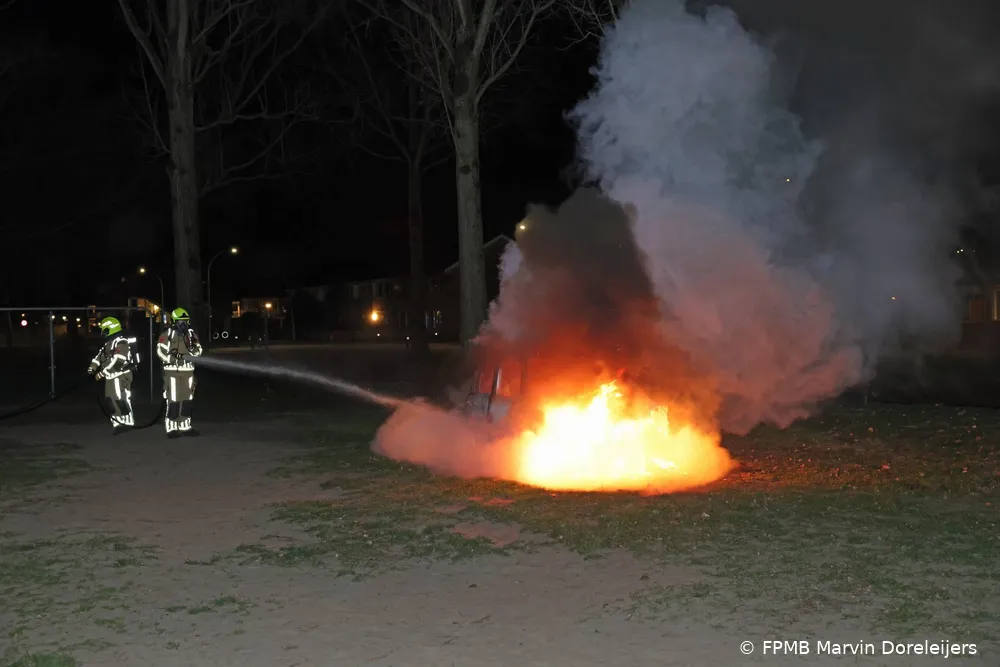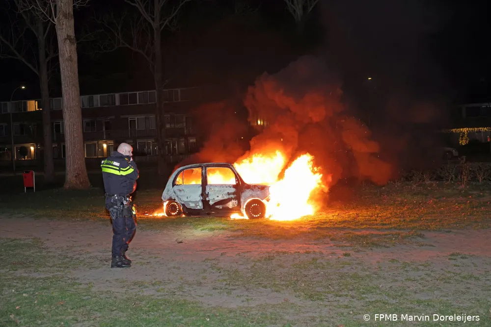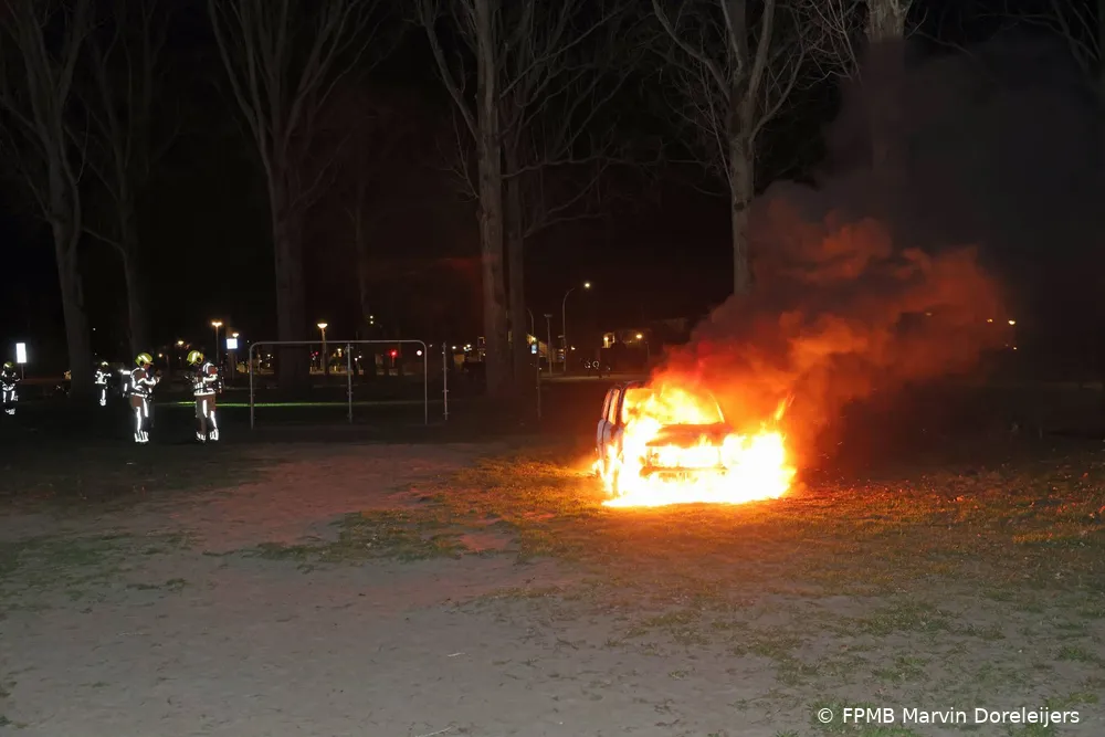 Rond 05.15 uur werd een buurtbewoner opgeschrikt door een harde knal. Toen deze ging kijken, bleek op een nabijgelegen grasveld een auto in lichterlaaie te staan. De brand ontwikkelde zich snel en ging gepaard met flinke vlammen en rookontwikkeling.