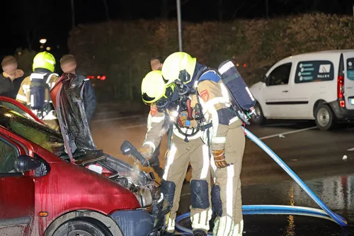 De politie arriveerde als eerste ter plaatse en wist met een schuimblusser de vlammen grotendeels te doven. Niet veel later nam de brandweer de bluswerkzaamheden over en bracht de situatie snel onder controle.