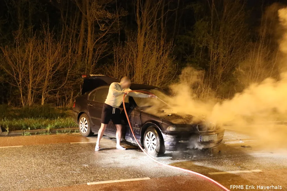 Op de Nederveenweg in Sprang-Capelle is zondagavond een auto spontaan in brand gevlogen nadat hij 2 1/2 uur geleden voor het laatst was gebruikt.