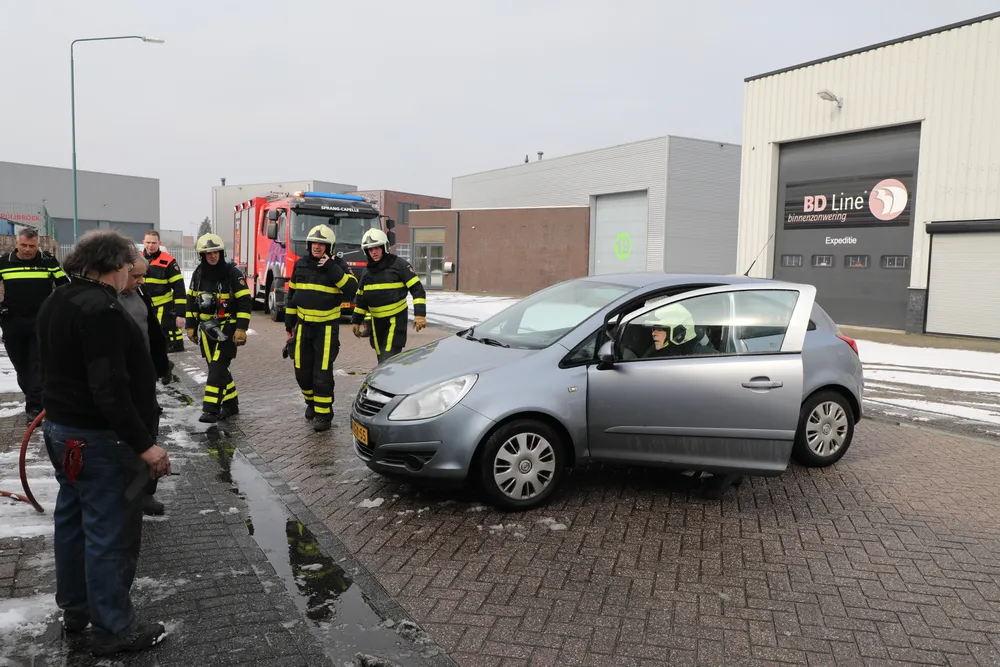 De automobilist kwam met zijn auto bij de garage voor reparatie van zijn uitlaat. Een passant rook een brandlucht en waarschuwde de mensen in het bedrijf. Die constateerde dat de auto in brand stond en hebben vervolgens de brandweer gebeld. Vervolgens hebben ze de auto van de oprit geduwd en zijn ze gaan blussen met hun een brandslang van het bedrijf. De brandweer heeft het vuur verder geblust, maar de apparatuur onder de motorkap was op dat moment al zwaar beschadigd. Aan de buitenkant leek de schade mee te vallen.