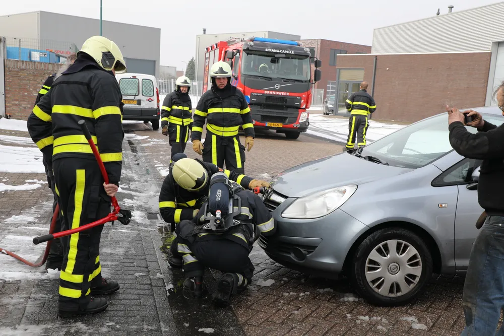Bij een garagebedrijf aan de Nies van der Schansstraat in Sprang-Capelle heeft zaterdagmiddag een auto vlam gevat onder de motorkap.