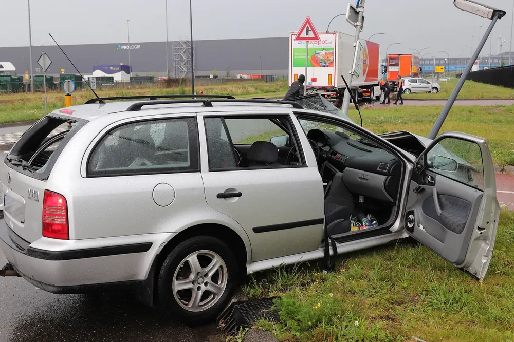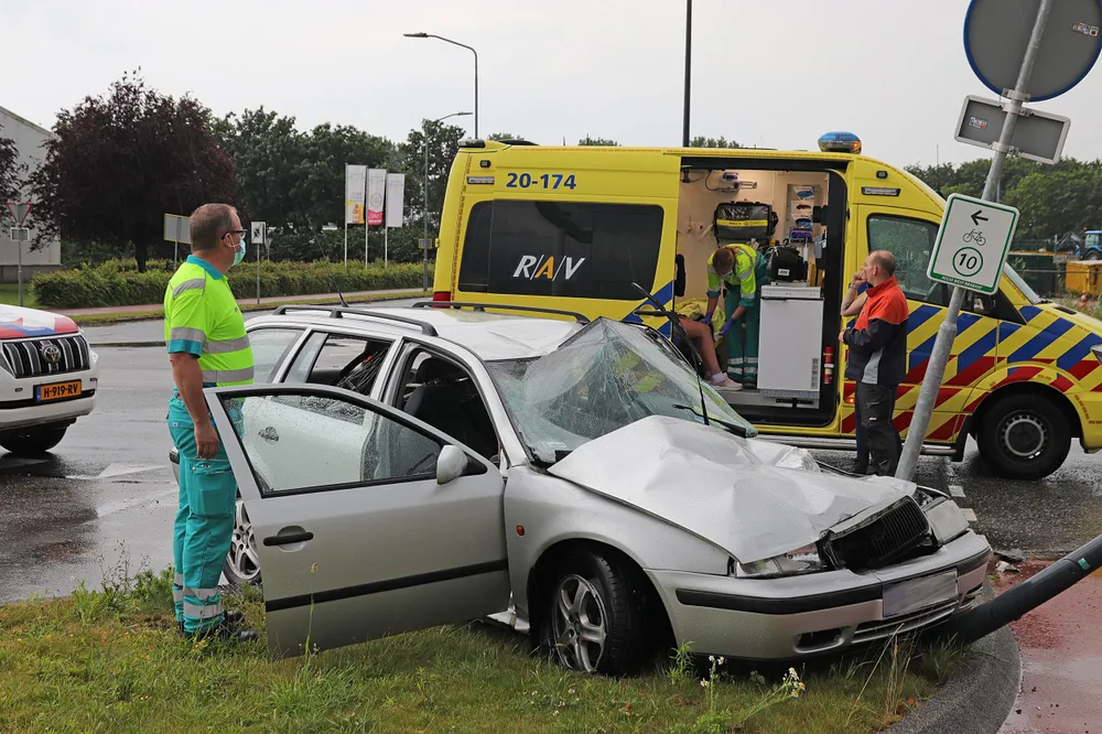 WAALWIJK - Op de Pakketweg in Waalwijk is zondagavond omstreeks 18:30 uur een automobilist tegen een vrachtwagen gebotst. De auto kwam na de botsing tot stilstand tegen een lantaarnpaal.