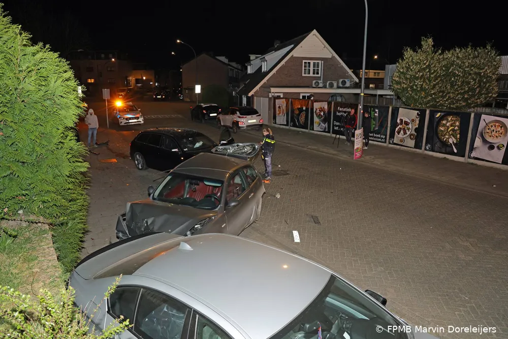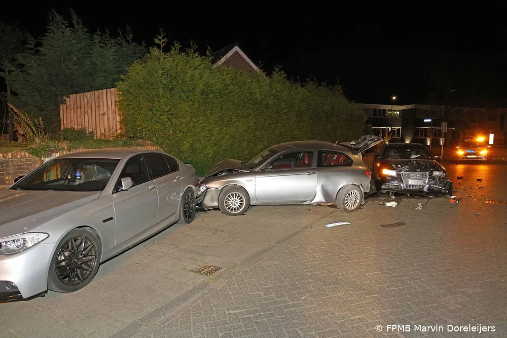 WAALWIJK – Een harde klap verstoorde in de nacht van zaterdag op zondag de rust aan de Laageindse Stoep, waar een automobilist op twee geparkeerde auto's botste.
