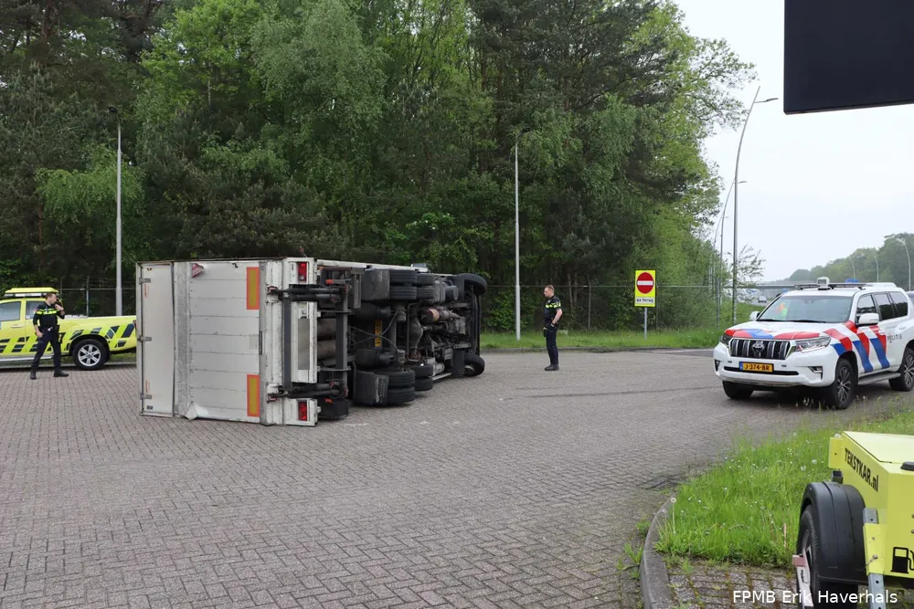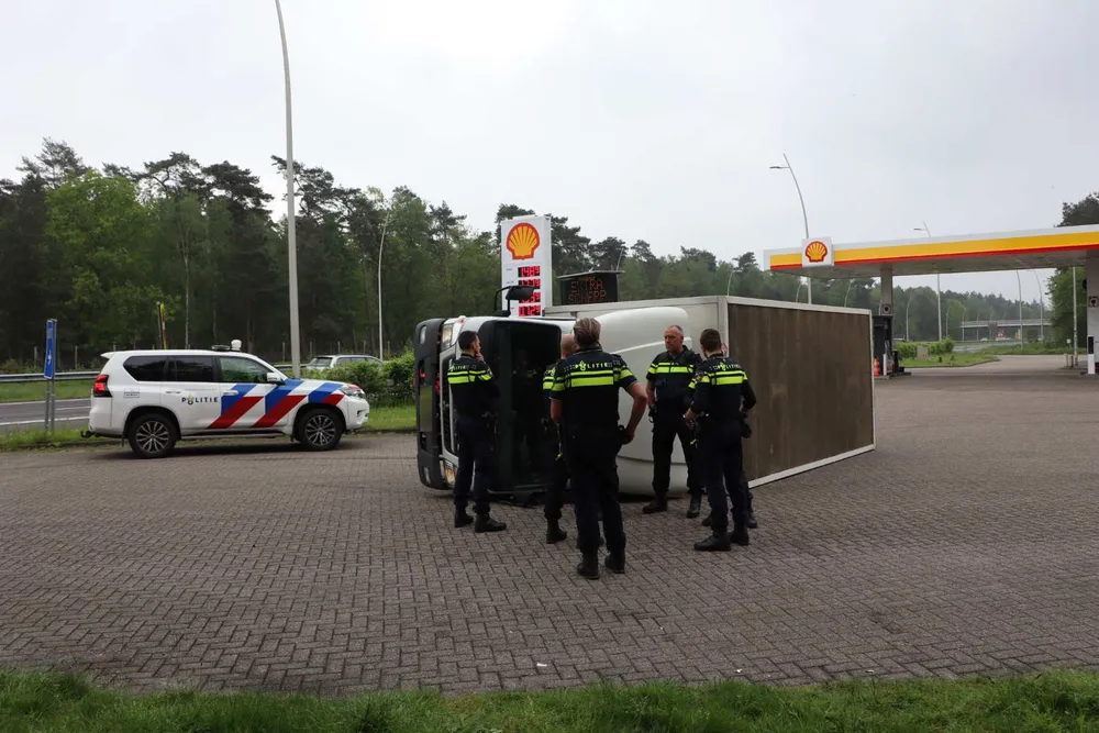 De bakwagen kwam in de slip en belandde op zijn kant. Na verder onderzoek bleek de chauffeur vermoedelijk onder invloed van drugs en alcohol te zijn. De politie doet verder onderzoek.