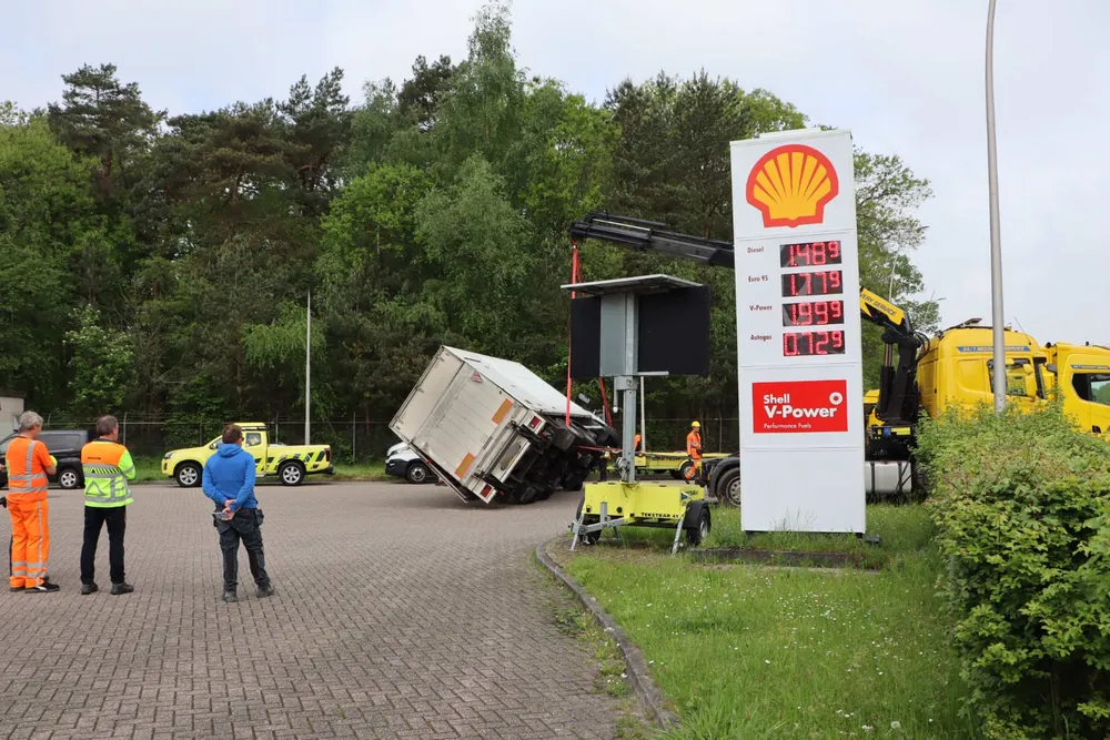 KAATSHEUVEL - Op donderdag 11 mei kon een chauffeur zijn bakwagen niet onder controle houden toen hij op de Midden-Brabantweg (N261) de afrit nam naar een aldaar gevestigd tankstation.