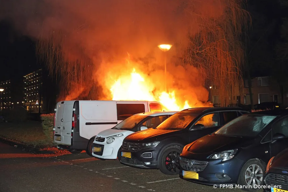 De melding kwam rond 01.45 uur binnen. Toen een omwonende poolshoogte nam op een parkeerplaats in de straat, stond de bestelbus al volledig in brand. De brandweer was snel ter plaatse en wist het vuur onder controle te krijgen, maar het voertuig ging volledig verloren.