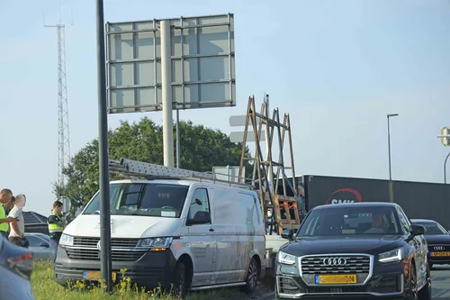 De bestuurder van een bestelbus had de hoogte van zijn aanhanger, waarop een glasbok was geplaatst, verkeerd ingeschat. Dit resulteerde in het afrijden van de waarschuwingsbalk, die vervolgens los over de weg kwam te hangen. De brandweer werd ingeschakeld om de balk veilig te verwijderen. Het incident leidde tot een tijdelijke verkeersopstopping.
