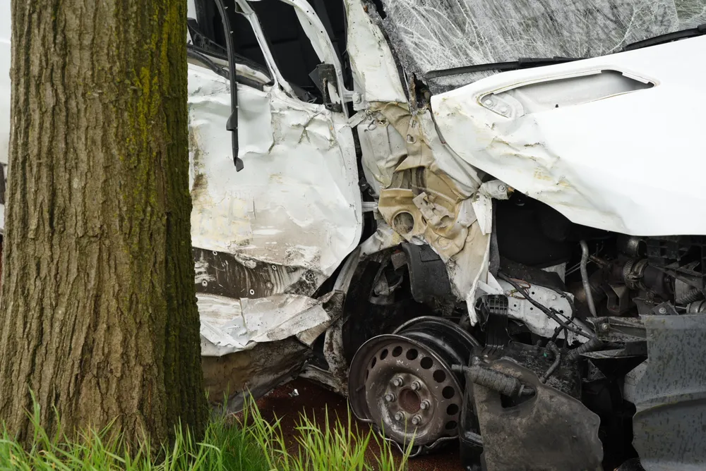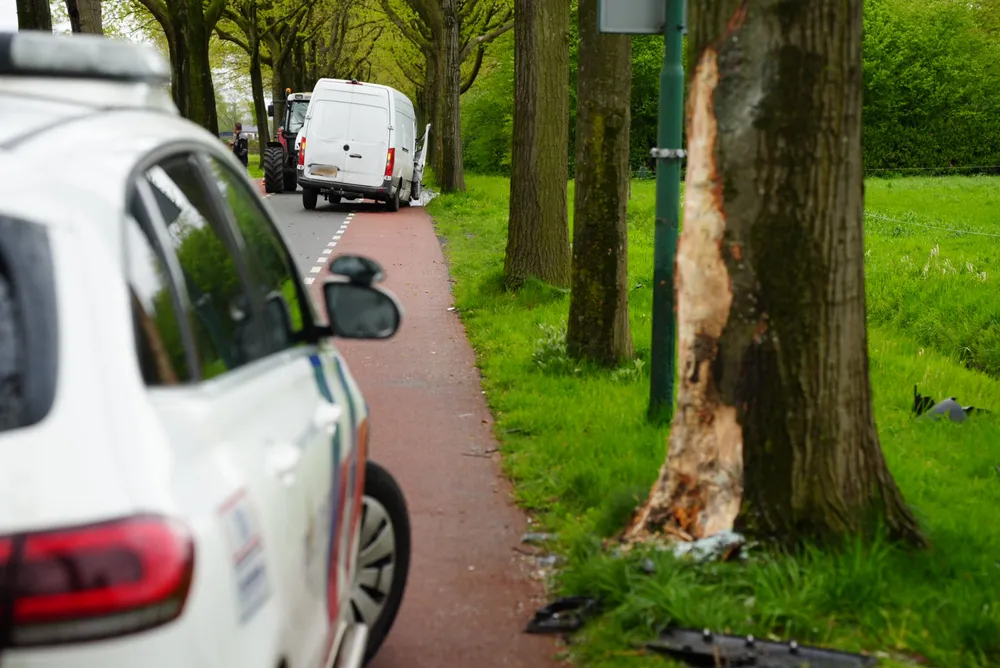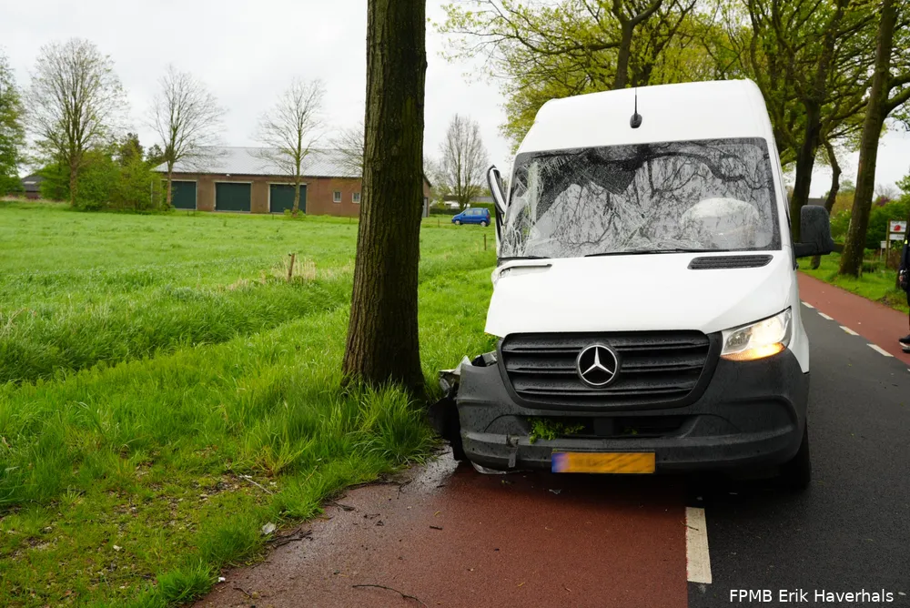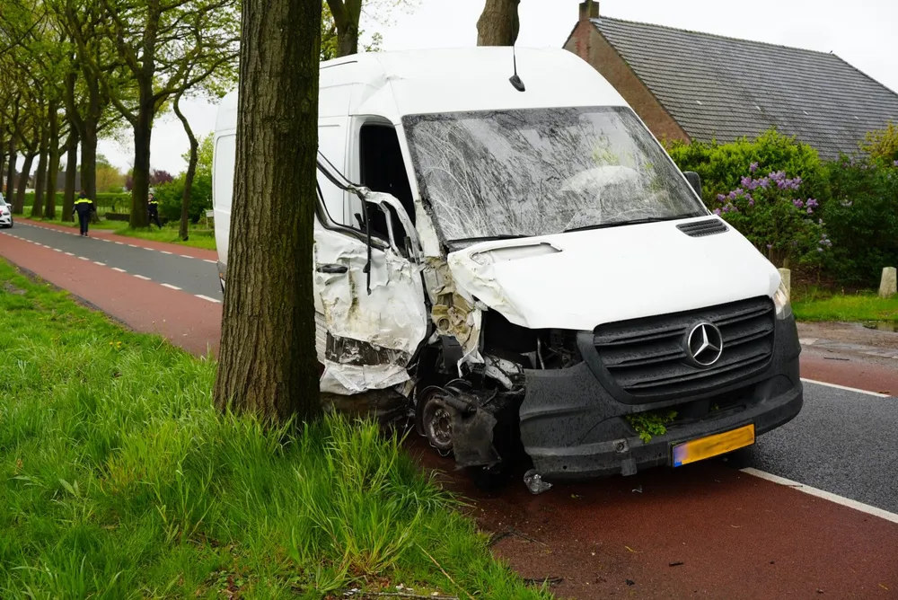 DE MOER - Op vrijdag 19 april, rond de klok van 11:00 uur, is een bestelbus tegen een boom gecrasht op de Middelstraat in De Moer.