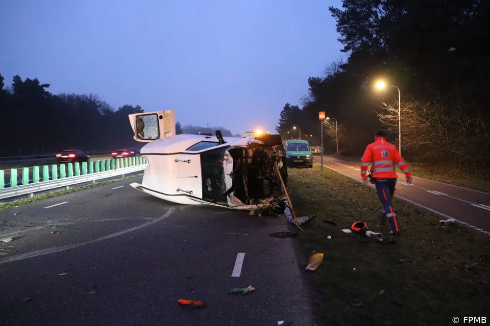 De bestuurder raakte gewond en is per ambulance naar het ziekenhuis vervoerd. Over de ernst van zijn verwondingen is niets bekendgemaakt. Hulpdiensten waren snel ter plaatse om medische hulp te verlenen en het verkeer te regelen.
