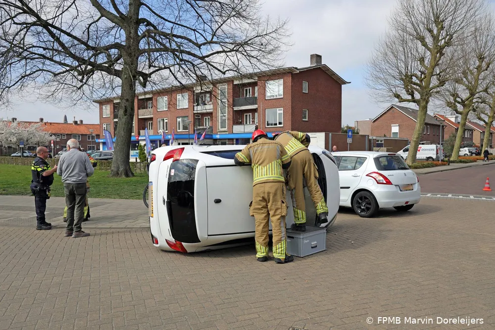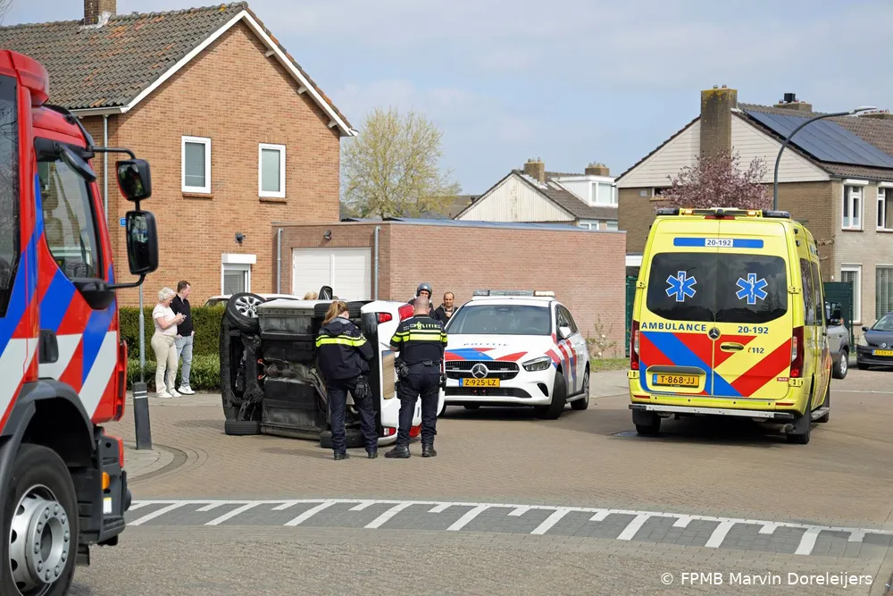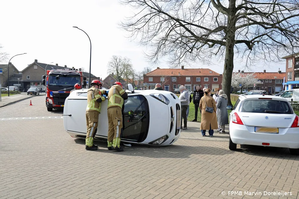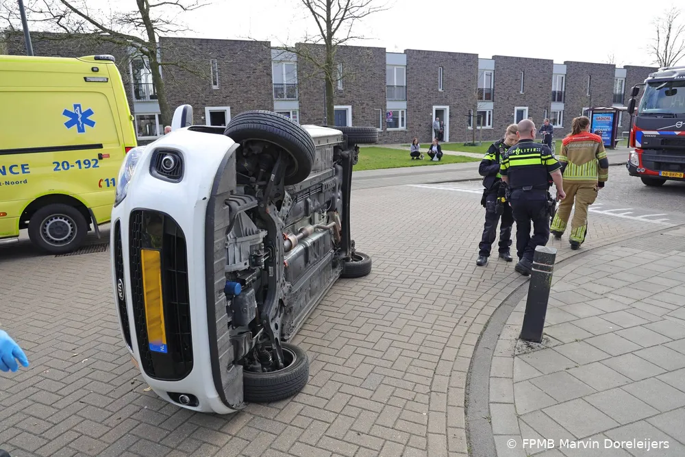De vrouw sloeg rond 13:15 uur linksaf, maar raakte daarbij een paaltje. Door de botsing kantelde de auto. Al snel schoten omstanders te hulp en wisten de bestuurster uit het voertuig te bevrijden.