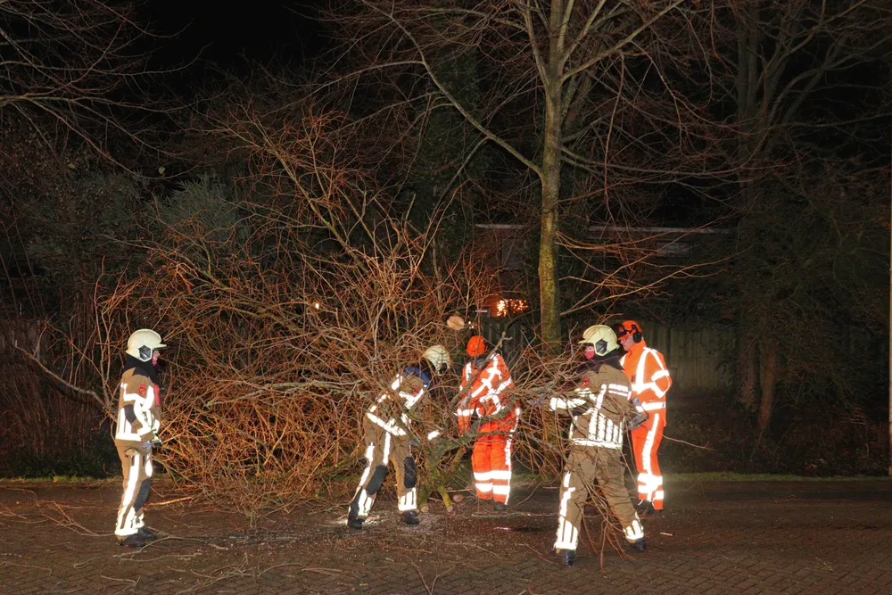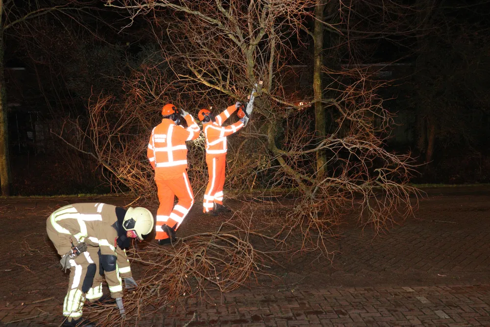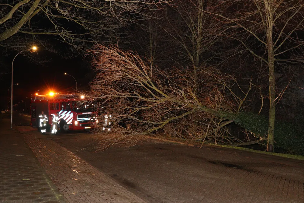 Door de harde storm van vannacht was er een boom omgewaaid op het wegdek. De brandweer heeft de boom in stukken gezaagd. De weg was snel weer open voor het verkeer.