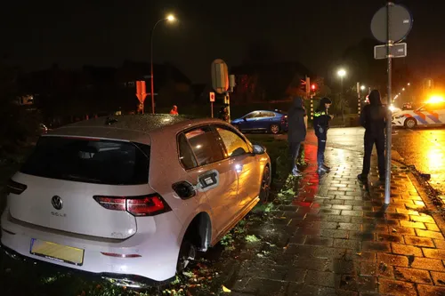 Een van de voertuigen kwam daarbij op het voetpad/grasveld terecht, waarbij ook een achterwiel afbrak. De andere auto liep eveneens aanzienlijke schade op. De oorzaak van het ongeval is nog niet bekend. Dit kruispunt is in het verleden al vaker het toneel geweest van verkeersongelukken. De politie was snel ter plaatse en doet onderzoek naar het incident. Voor zover bekend zijn er geen gewonden gevallen.