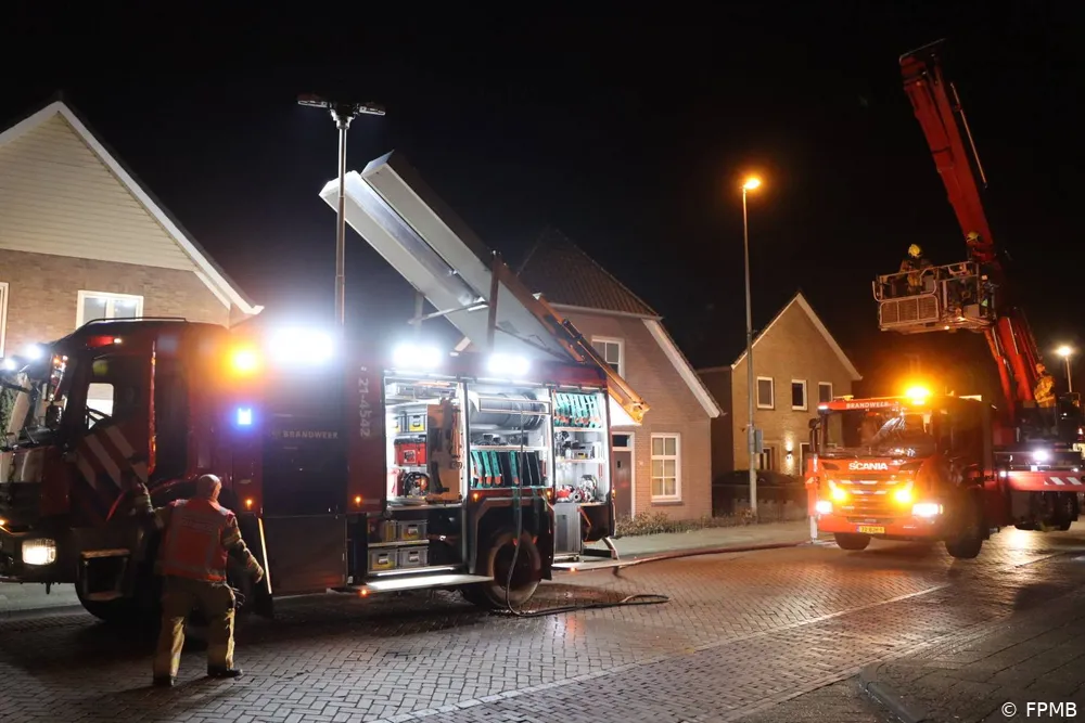 DRUNEN - Maandagavond 10 maart omstreeks 22:45 uur is er brand uitgebroken in het dak van een woning aan de Grotestraat. De brandweer schaalde direct op naar middelbrand en rukte met meerdere voertuigen uit.