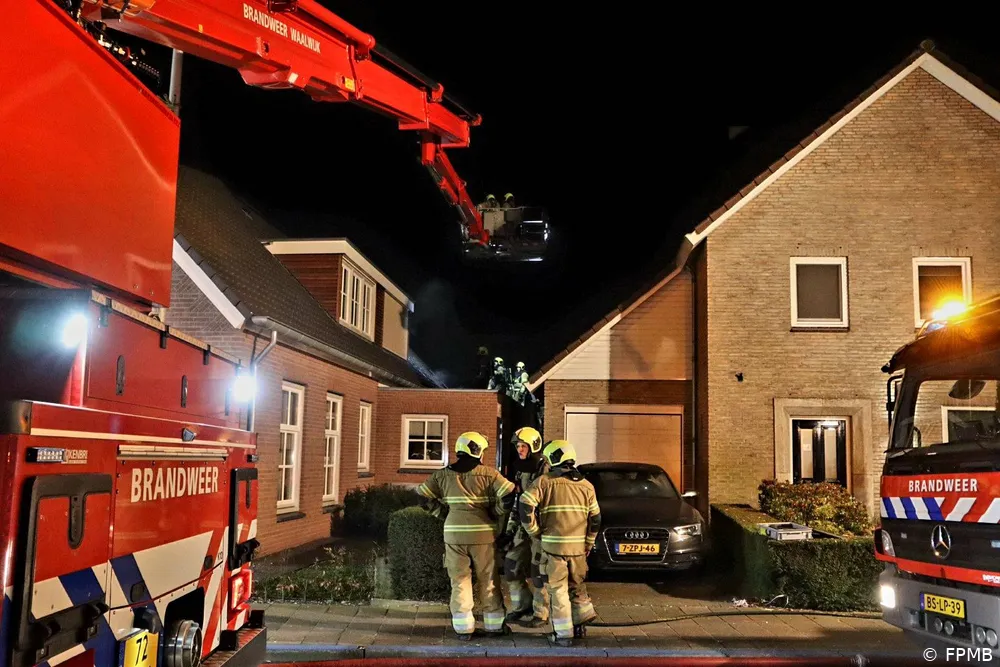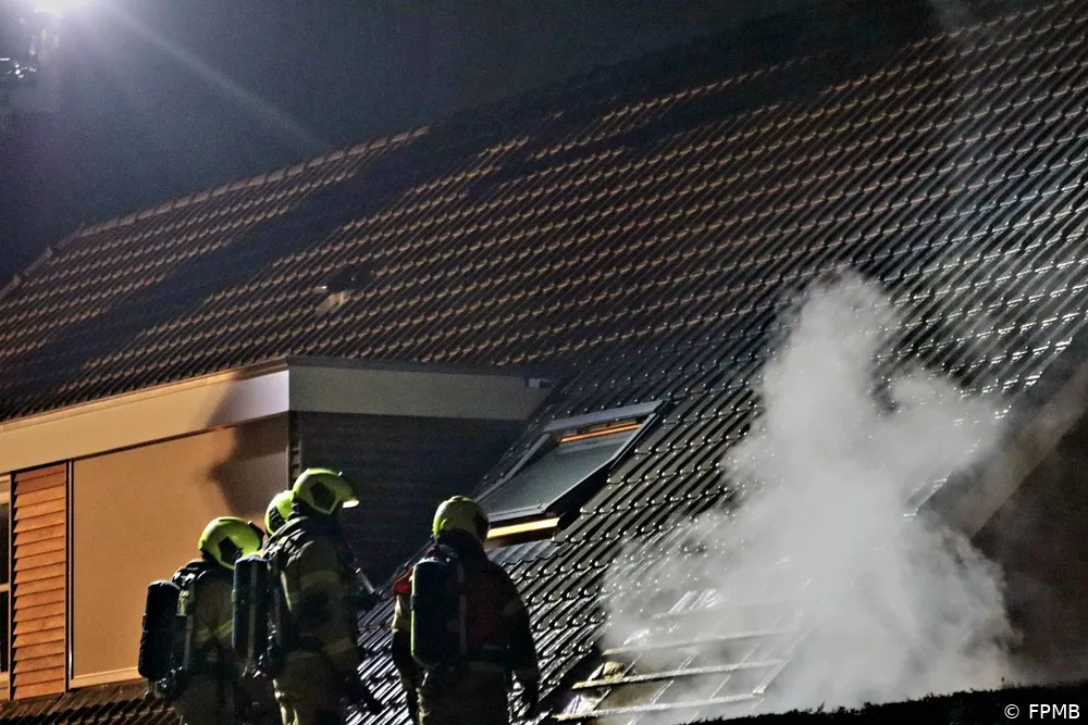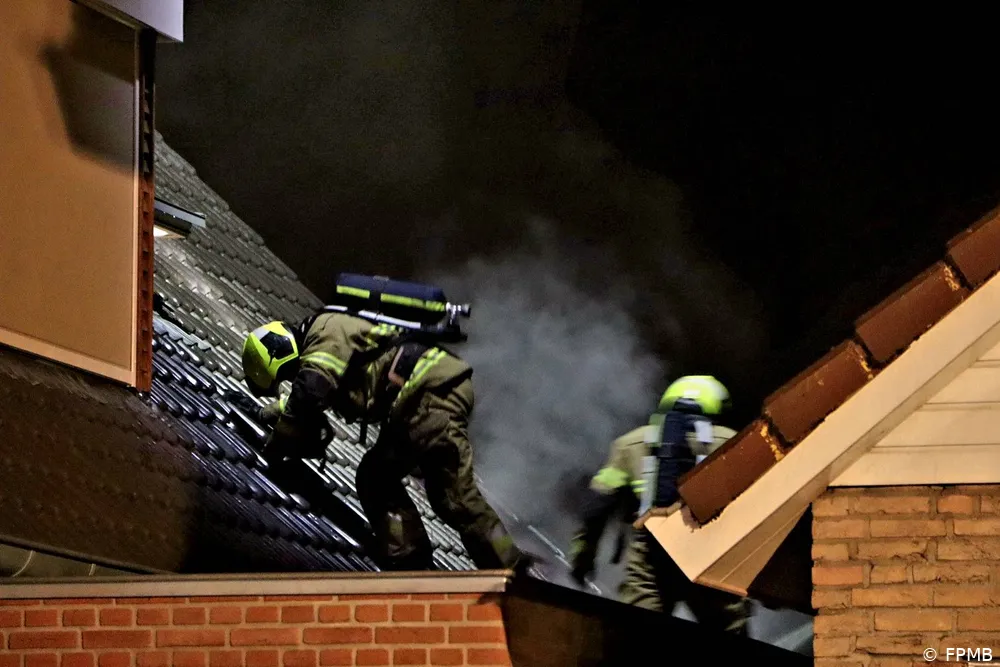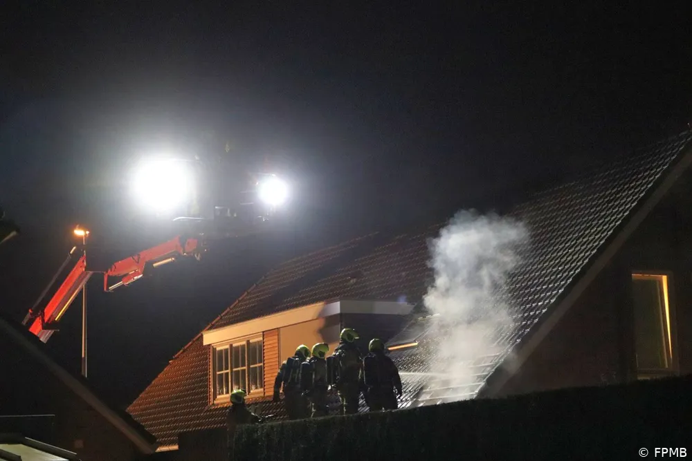 Bij aankomst bleek er rook uit de dakplaten te komen. De brandweer had het vuur snel onder controle en bluste de brand. Om het vuur volledig te doven, werden dakpannen verwijderd.
