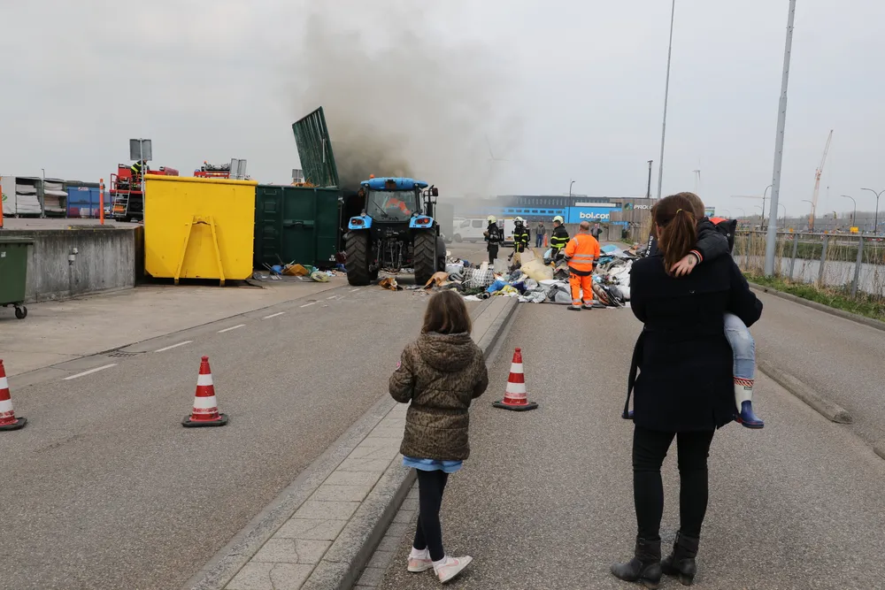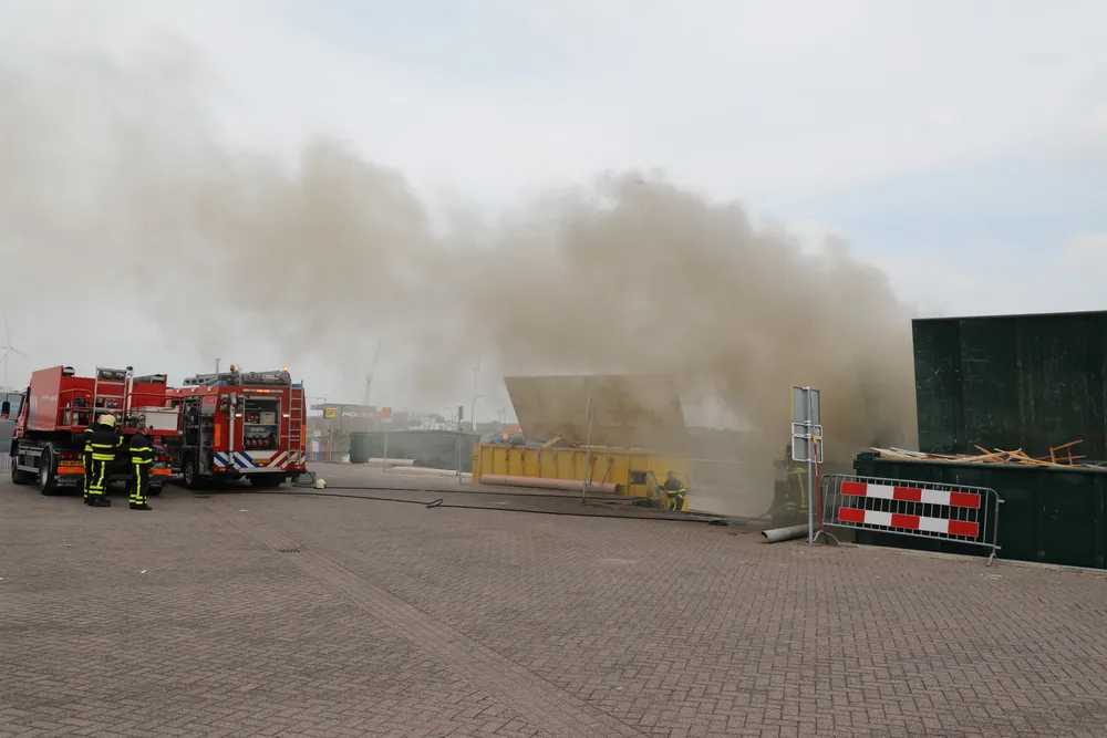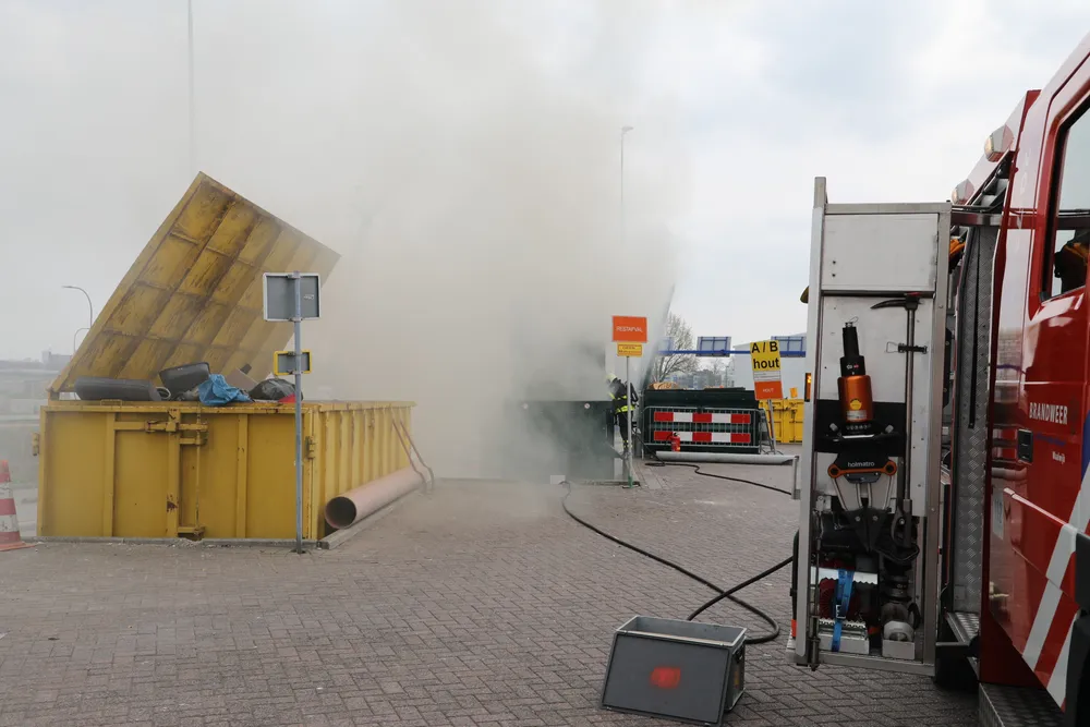 WAALWIJK - Bij de milieustraat aan de Weteringweg in Waalwijk is zaterdagmiddag een perscontainer vol met restafval in brand gevlogen.