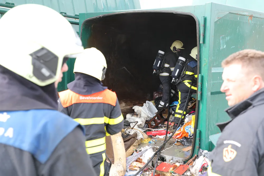 De brandweer kwam ter plaatse met 2 voertuigen omdat er geen waterwinning op het terrein was. Mensen die hun afval kwamen brengen liepen door de brand veel vertraging op. De gemeente heeft met een kraan de container leeg gemaakt en de brandweer heeft het geblust. Ze zijn hier ruim een uur mee bezig geweest.