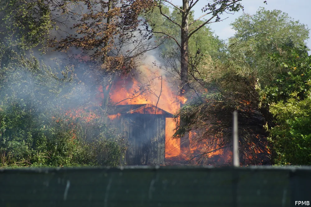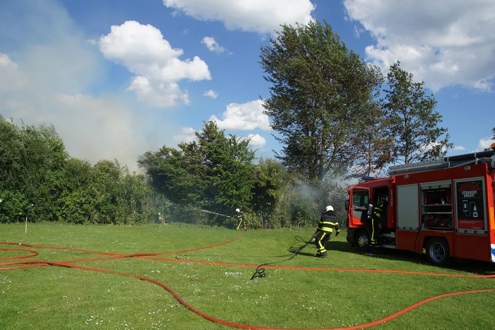 De brandweer zette twee blusvoertuigen in om de brand te blussen. Het schuurtje is volledig afgebrand. Hoe de bermbrand ontstond is nog niet duidelijk. Opvallend genoeg ontstond zaterdag op dezelfde plek ook al een bermbrand. Deze werd geblust voordat hij veel schade kon toebrengen.