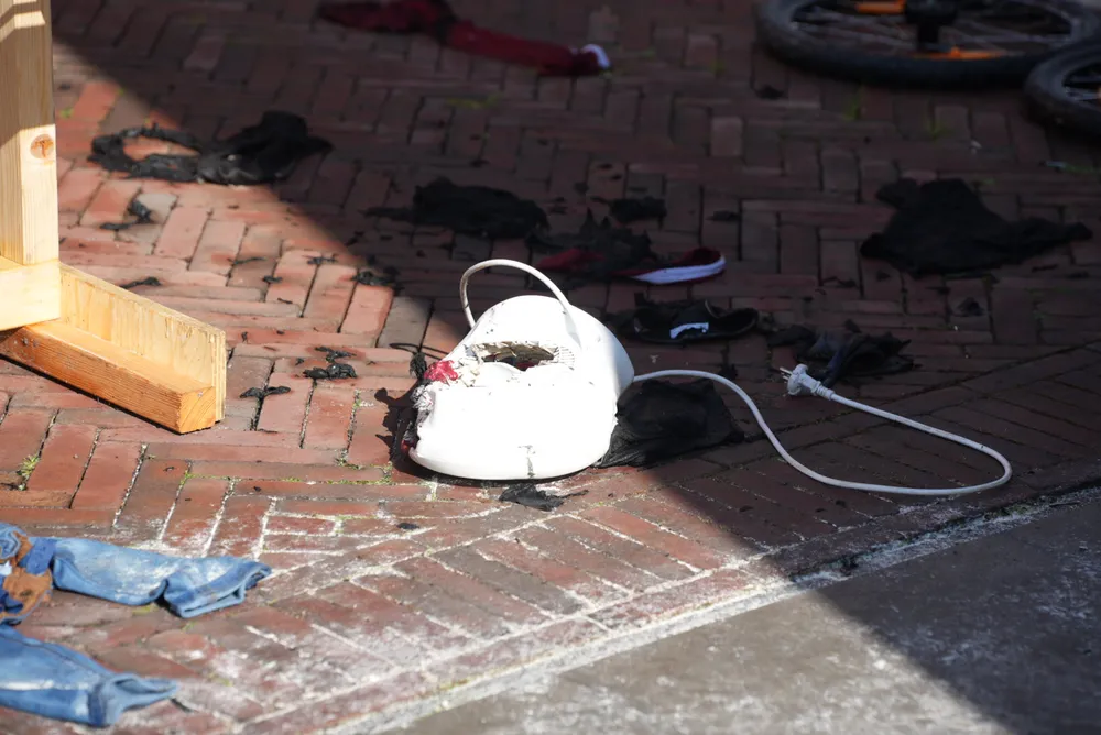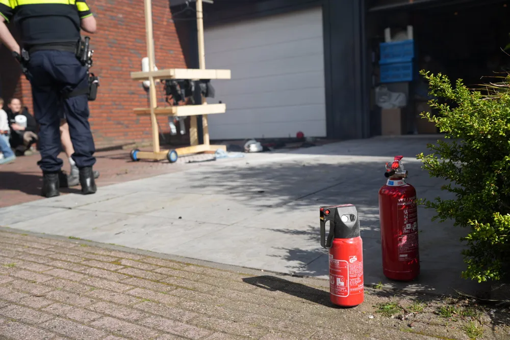 De eigenaar heeft het brandende rekje naar buiten gereden en geprobeerd de brand te blussen. Een motorrijder van de politie heeft vervolgens het vuur verder geblust met zijn poederblusser. De bewoner liep tijdens het blussen brandwonden aan zijn hand op. Zijn hand werd door de brandweer gekoeld, waarna hij in een ambulance werd behandeld. Hij hoefde niet naar het ziekenhuis.