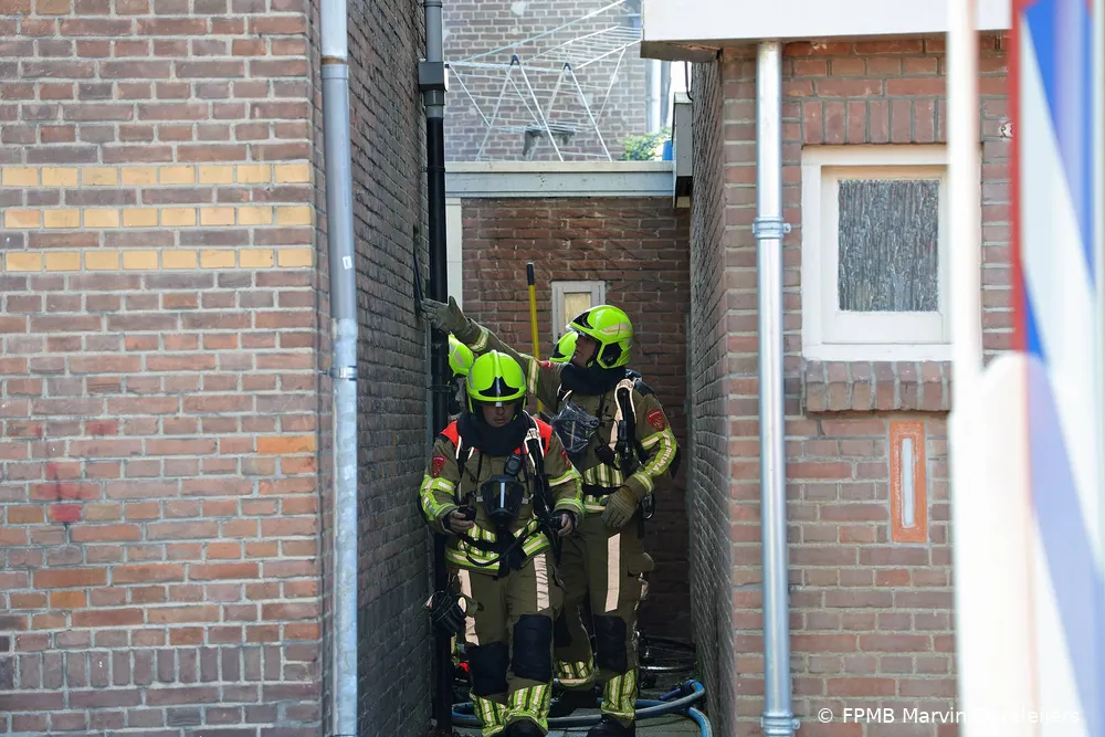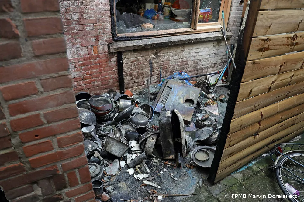 Bij aankomst bleken achter op het perceel meerdere pannen, vuilnis en kasten in brand te staan. Dankzij snel optreden van de brandweer kon verdere schade worden beperkt. De bewoonster van het pand had rook ingeademd en werd ter plaatse onderzocht door ambulancepersoneel.