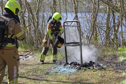 Een politieagent die met de fiets onderweg was, had een emmer bij zich en gebruikte deze om alvast te beginnen met het blussen van de vlammen. Dankzij deze snelle actie kon erger worden voorkomen.