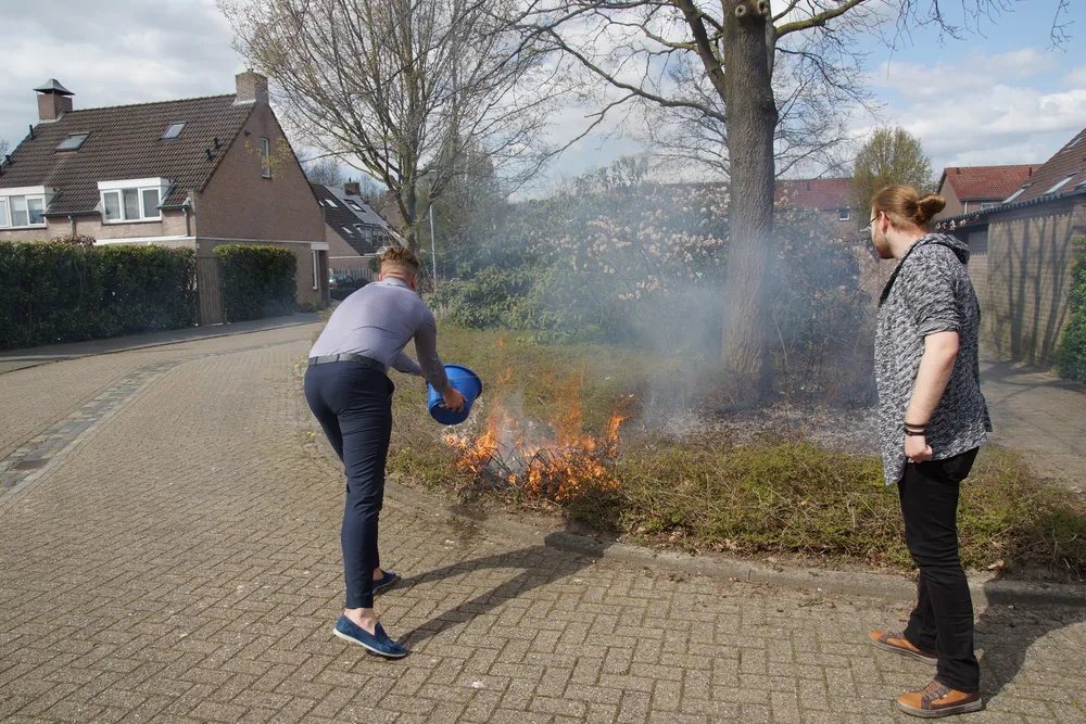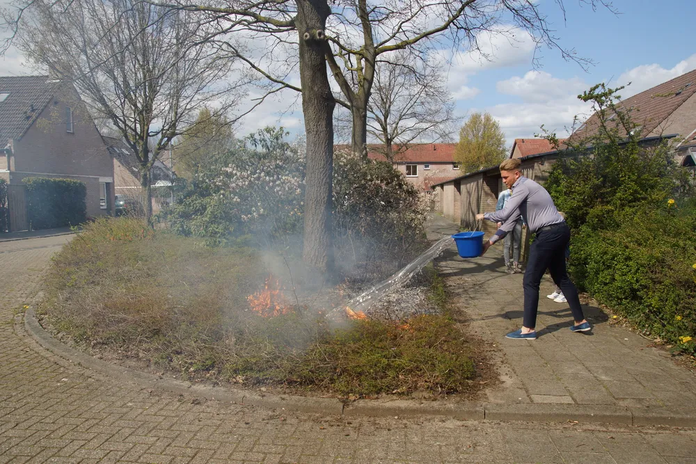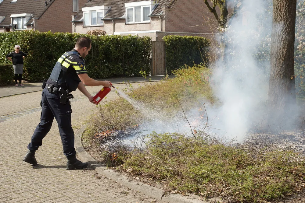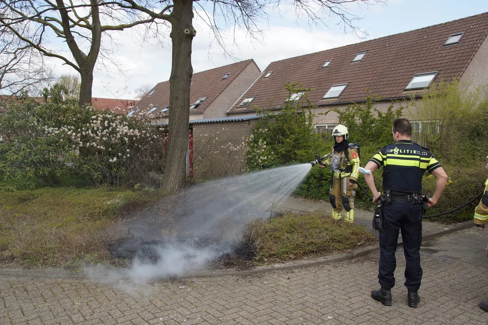 Buurtbewoners en politie probeerde de brand te blussen met emmers water en een schuimblusser. De brandweer kwam ter plaatse om de brand helemaal te blussen. De bosschages/struiken zijn door de brand flink beschadigd.
