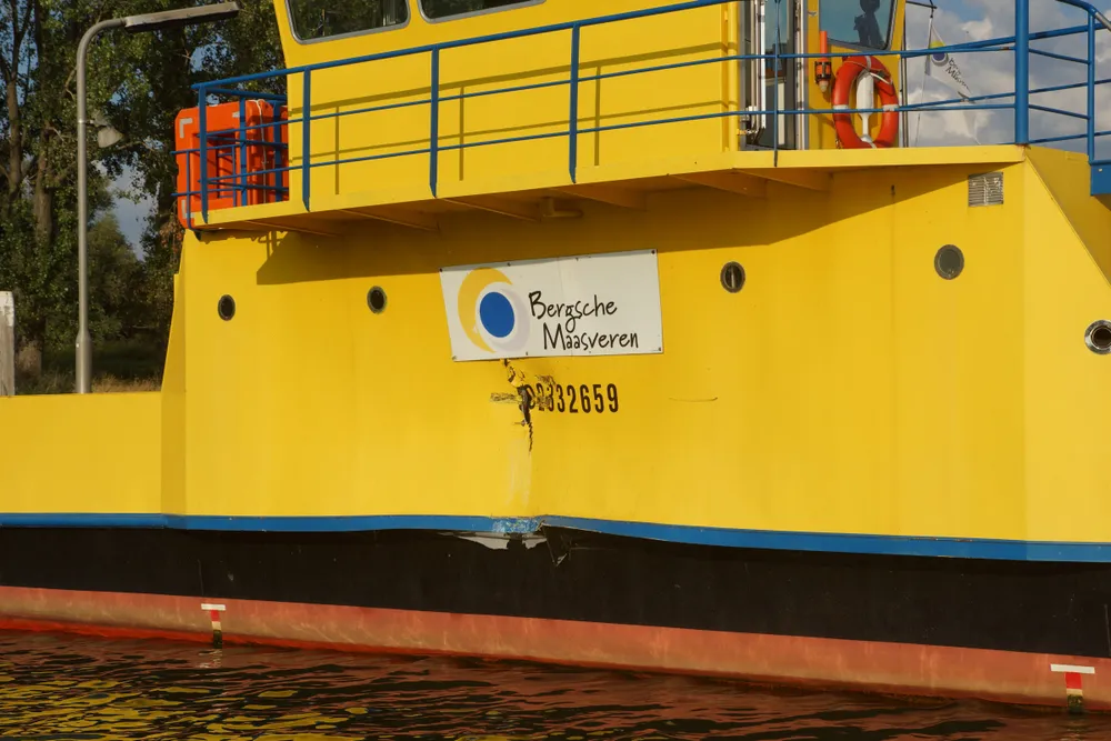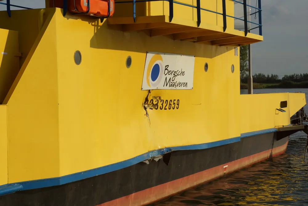 SPRANG-CAPELLE / DUSSEN - Een binnenvaartschip is dinsdagmiddag omstreeks 17.00 uur tegen het veer tussen Sprang-Capelle en Dussen aangevaren.