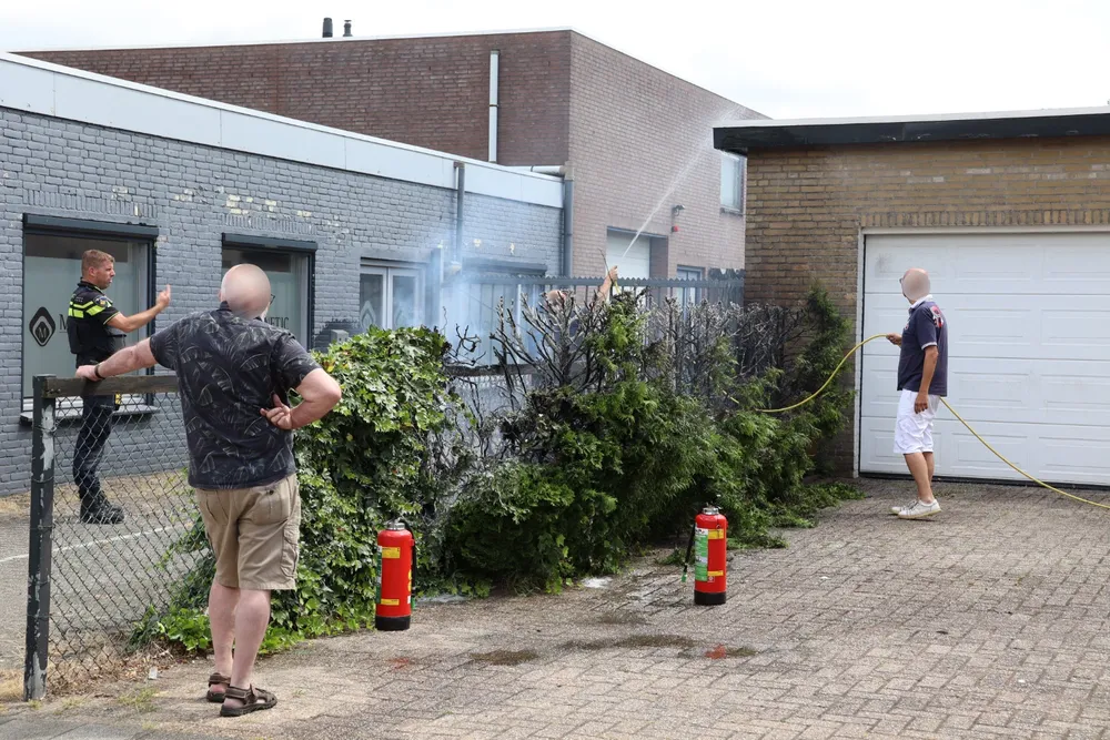 Het vuur sloeg over op een coniferenhaag, wat leidde tot een flinke brand die zich uitbreidde naar het dak van een aangrenzende garage. Meerdere omstanders schoten te hulp met tuinslangen en brandblussers om de felle brand te bedwingen. De gealarmeerde brandweer arriveerde en doofde de brand verder. Ook moest de brandweer een deel van een dakrand slopen om het vuur volledig te blussen. Er kwam veel rook vrij. Ook de politie was ter plaatse. De persoon die bezig was met het onkruidbranden was flink geschrokken. Getuigen meldden dat de coniferenhaag in no time in brand stond.