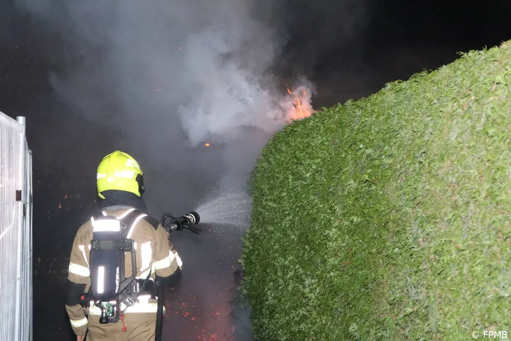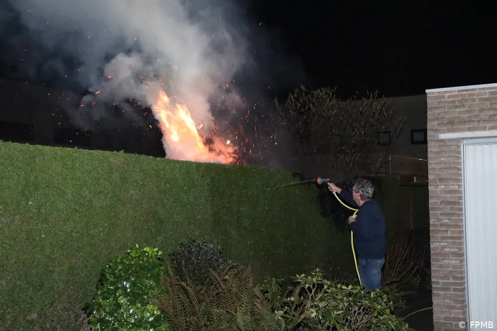 De brandweer nam het bluswerk direct over en wist de brand snel volledig te doven. Hiermee werd voorkomen dat het vuur oversloeg naar andere delen van de tuin of nabijgelegen woningen. Na het nablussen controleerden de brandweerlieden de haag zorgvuldig op smeulende resten.