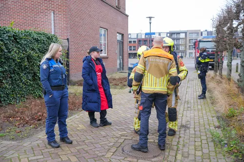 De brandweer was snel ter plaatse en heeft de brandende accu in een vuilcontainer met water geplaatst om verdere schade te voorkomen en de accu te koelen.