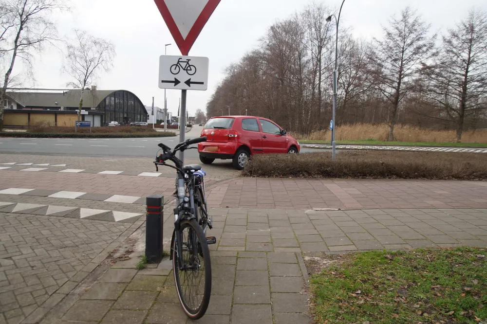 De auto botste rond 13.30 uur met de fietser, die op het fietspad reed. De man raakte gewond en is in een ambulance naar het ziekenhuis gebracht. De politie onderzoekt hoe het ongeval kon gebeuren.