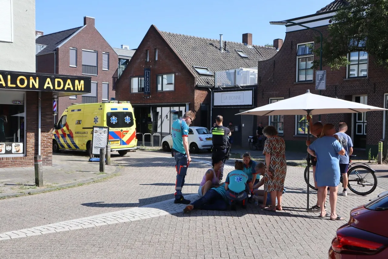 Door nog onbekende oorzaak botsten twee fietsers tegen elkaar. Omstanders boden direct eerste hulp en beschermden de gewonde man met een parasol tegen de zon. De fietser is met een ambulance naar het ziekenhuis vervoerd.