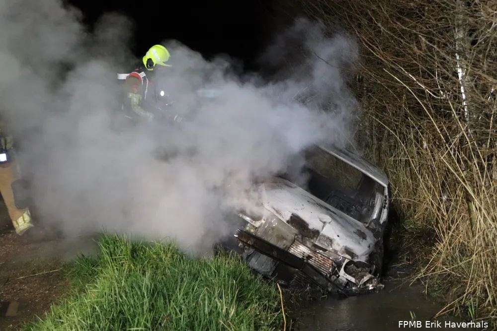WASPIK - In de nacht van zaterdag op zondag is op de Maaskade in de polder bij Waspik een gedumpte auto in brand gevlogen.