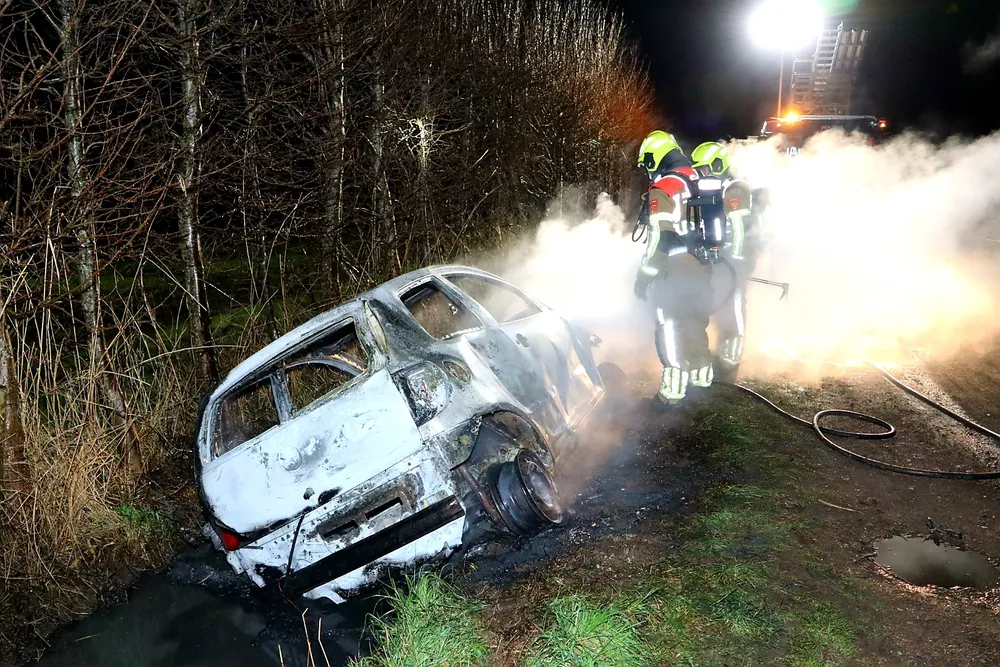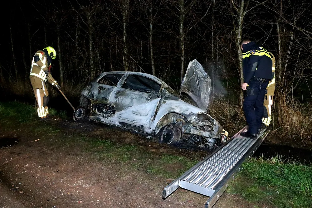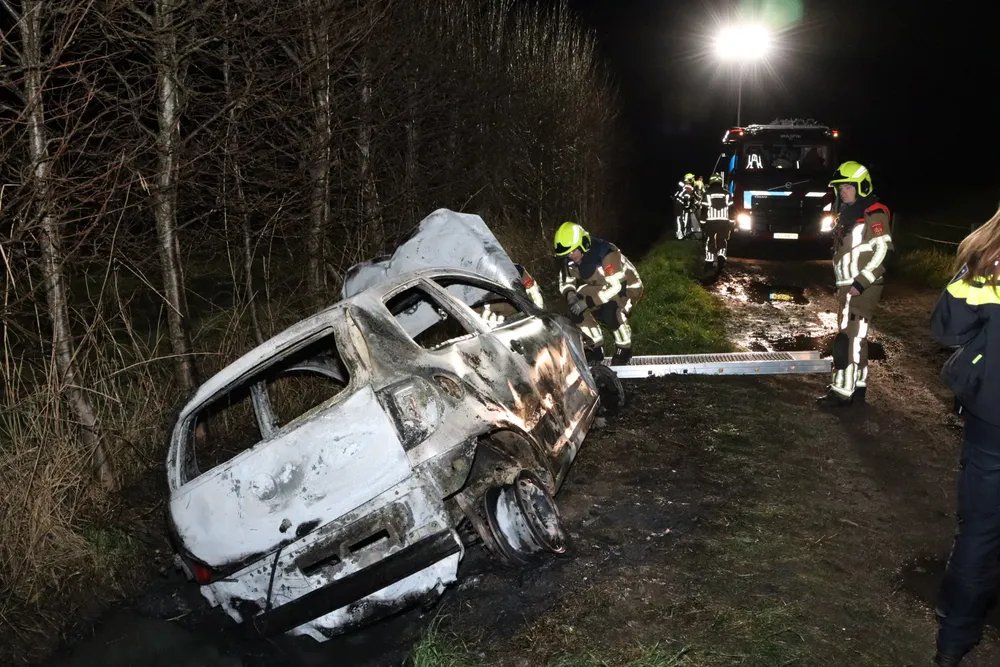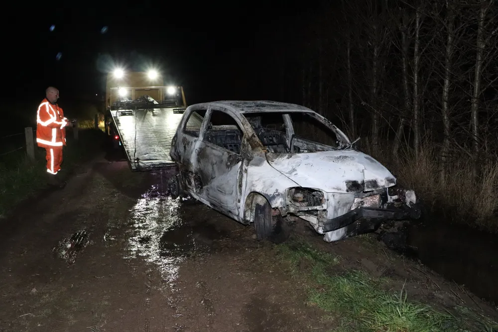 De auto bevond zich op een onverharde weg en was in de sloot beland. Het betrof mogelijk een rode Volkswagen Fox met aanzienlijke schade aan de voorkant. Gezien de locatie lijkt het erop dat de auto gebruikt is voor joyriding. De eigenaar van de auto is niet bekend. Mogelijk lag de auto al enkele dagen in de sloot. Een takelbedrijf werd ingeschakeld om het wrak te bergen.