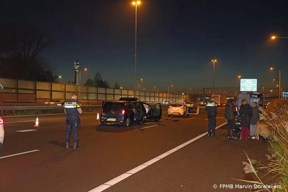 Ambulancepersoneel behandelde één van de betrokkenen op de vluchtstrook. Een tweede gewonde had last van haar benen na de harde klap. Voor zover bekend hoefde geen van de gewonden direct naar het ziekenhuis.