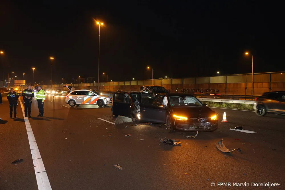 Rijkswaterstaat sloot één rijstrook af om hulpdiensten voldoende ruimte te geven. Daardoor ontstond een forse file in de richting van knooppunt Hooipolder, precies tijdens de avondspits. Een takelbedrijf haalde de beschadigde voertuigen weg.