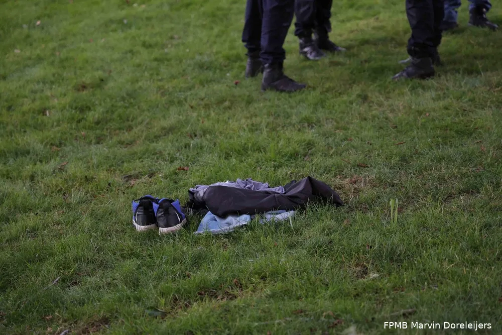 Ondanks dat enkele duikers meteen het water ingingen, werd er niemand aangetroffen. De politie heeft inmiddels de identiteit van de persoon vastgesteld, dankzij een identiteitsbewijs dat bij de kleding lag. De politie is momenteel op zoek naar de man.